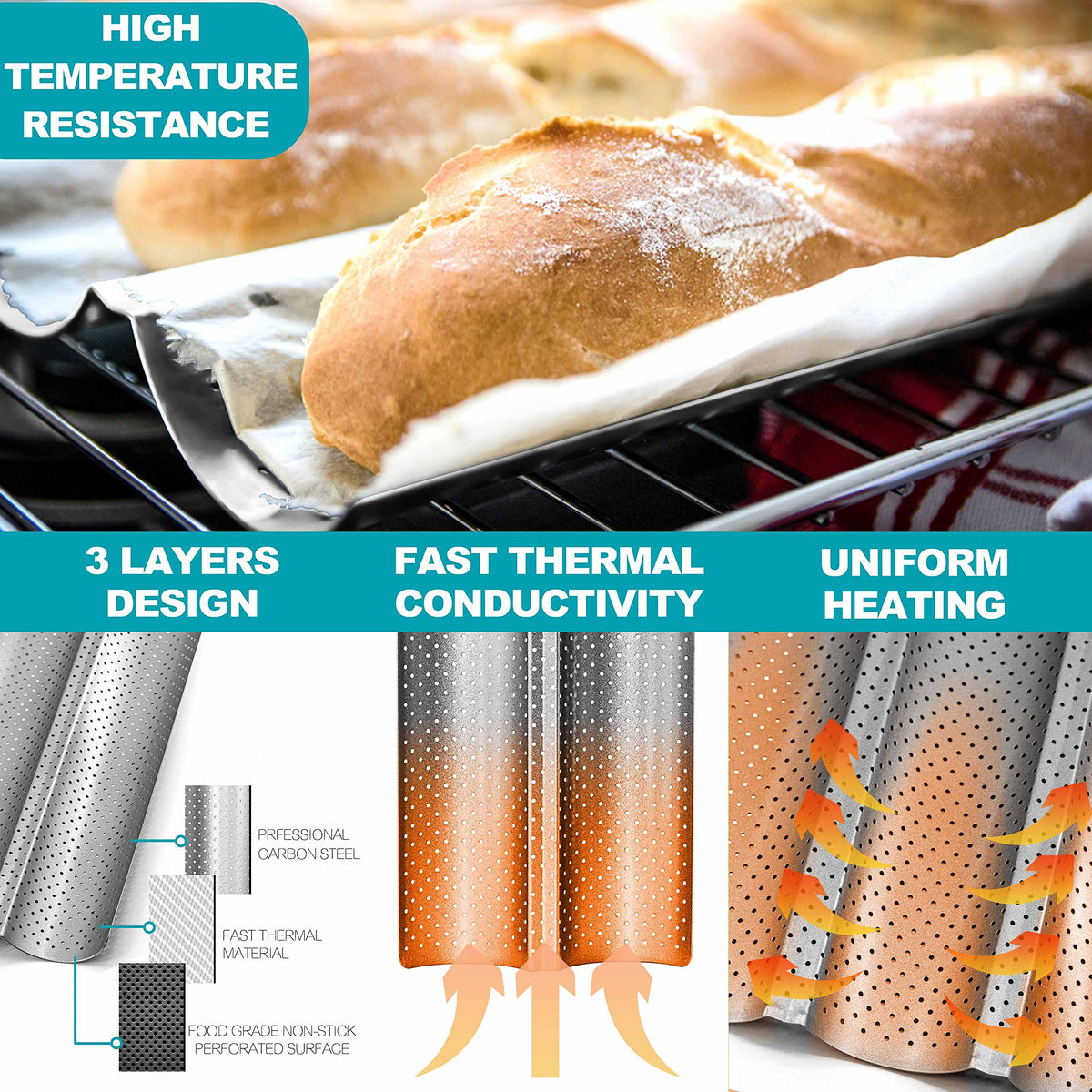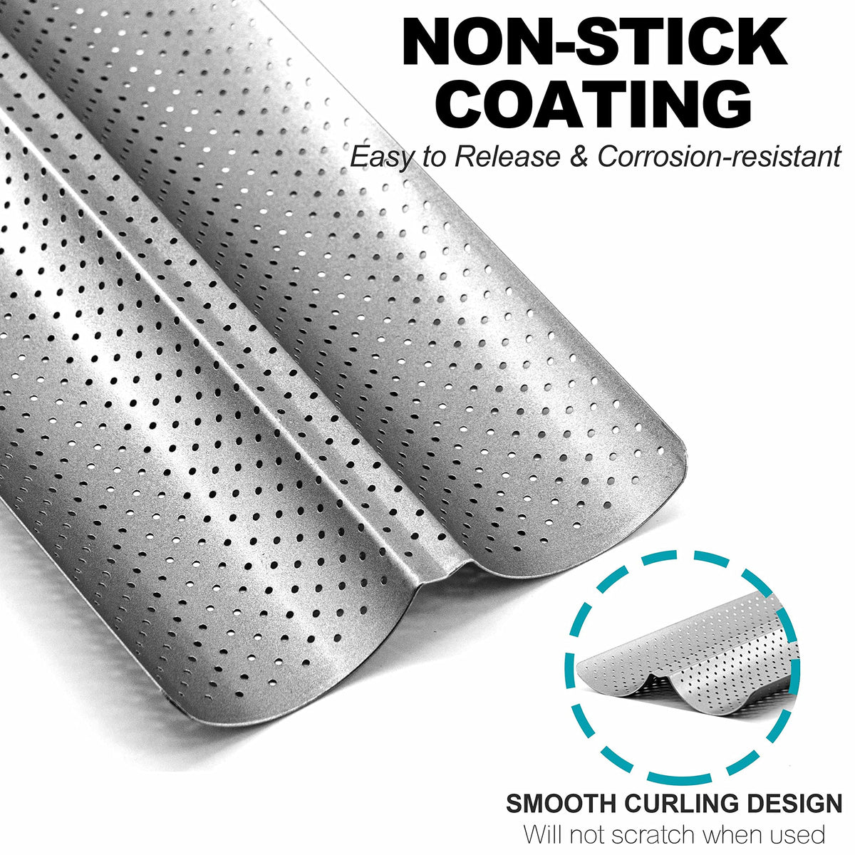 Anaeat Nonstick Perforated French Bread Baking Pan, 15''X 6.3'' Premium Toast Mold Great For 2 Loaves Baguettes, French & Italia