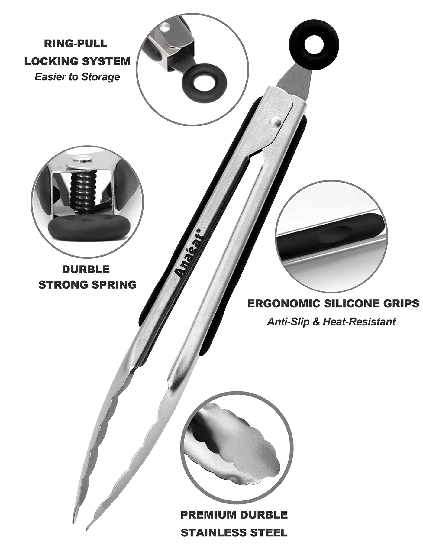 - Q: Are these tongs suitable for professional use? A: Yes, the Anaeat tongs are designed as professional grade heavy-duty tongs, perfect for both home cooks and professional chefs.