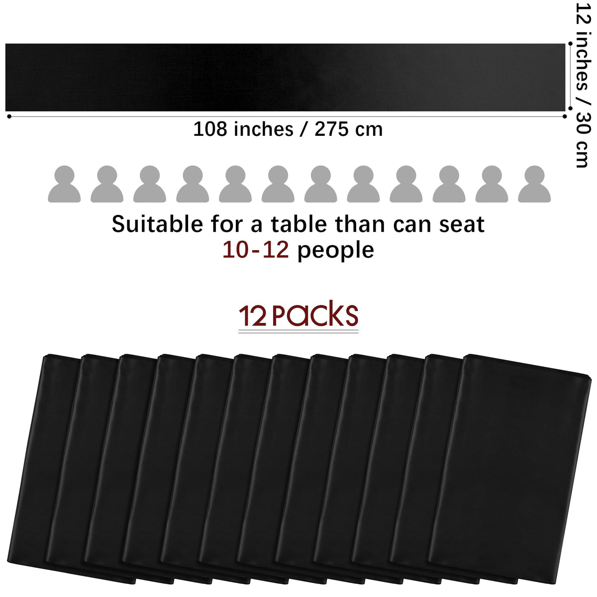 Aneco 12 Pack Satin Table Runner 12 X 108 Inch Black Long Wedding Satin Silk Table Runner For Wedding Banquet Graduations Birthd