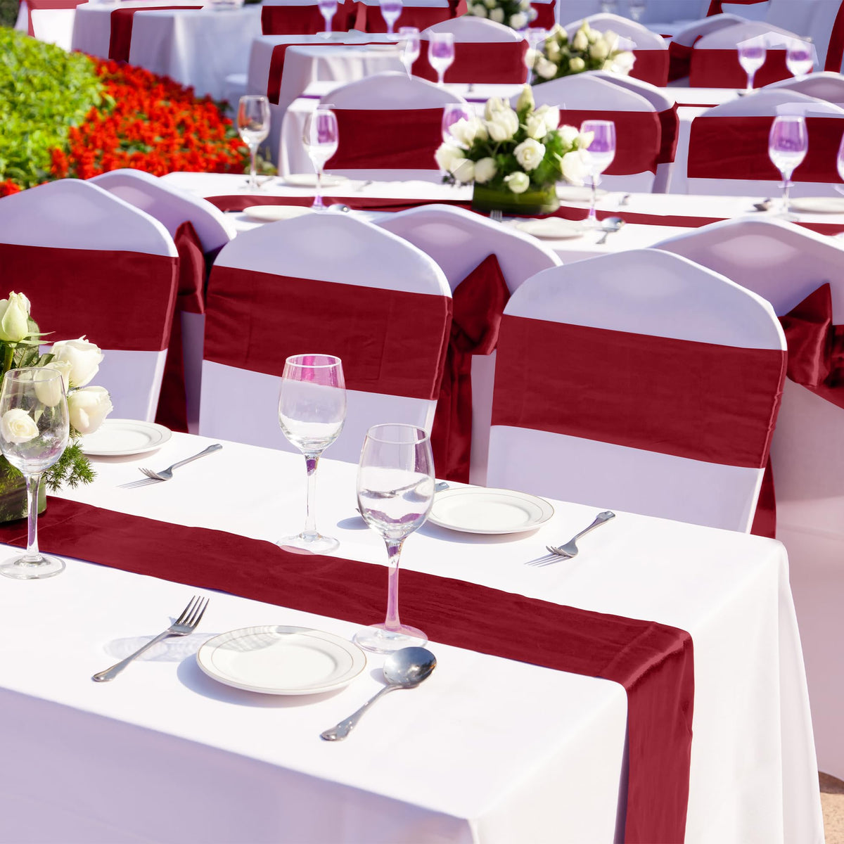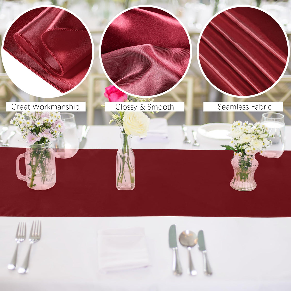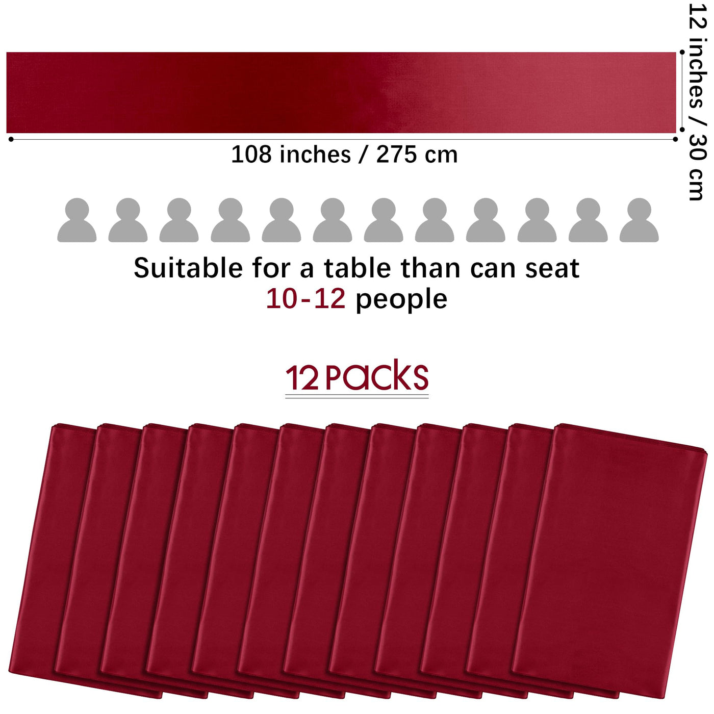 Aneco 12 Pack Satin Table Runner 12 X 108 Inch Burgundy Long Wedding Satin Silk Table Runner For Wedding Banquet Graduations Bir