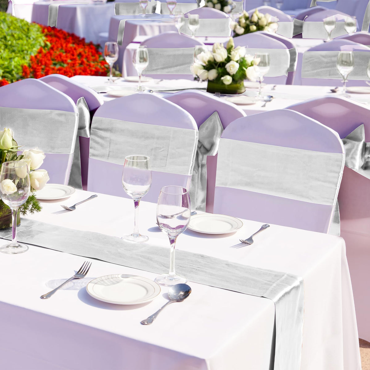 Aneco 12 Pack Satin Table Runner 12 X 108 Inch Light Silver Long Wedding Satin Silk Table Runner For Wedding Banquet Graduations