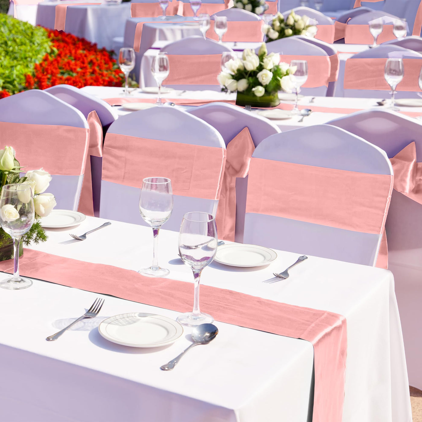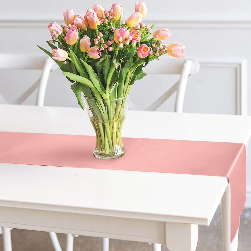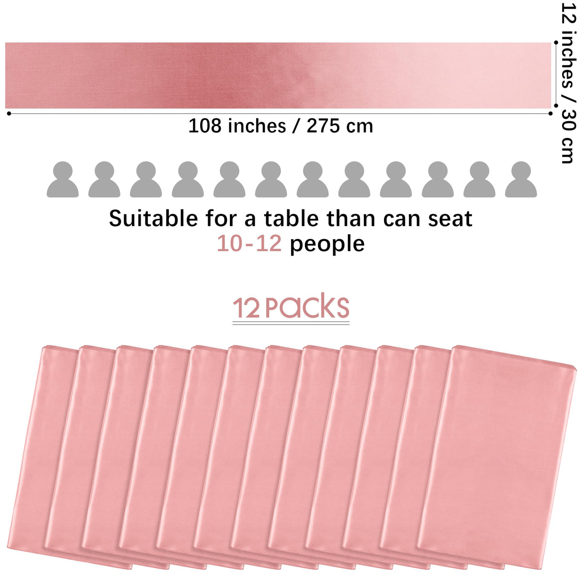 Aneco 12 Pack Satin Table Runner 12 X 108 Inch Rose Gold Long Wedding Satin Silk Table Runner For Wedding Banquet Graduations Bi