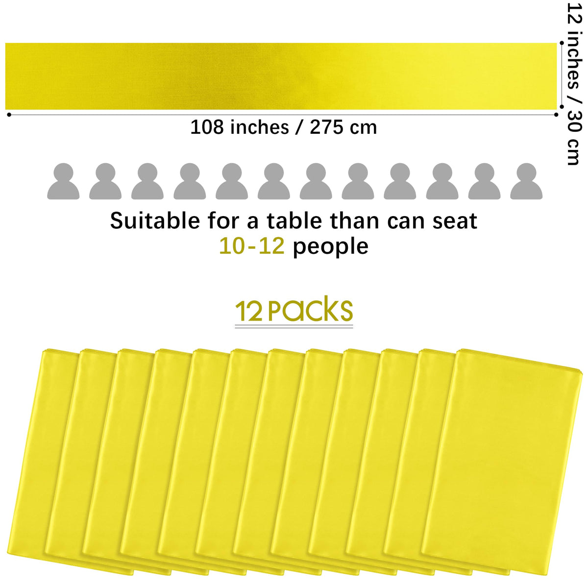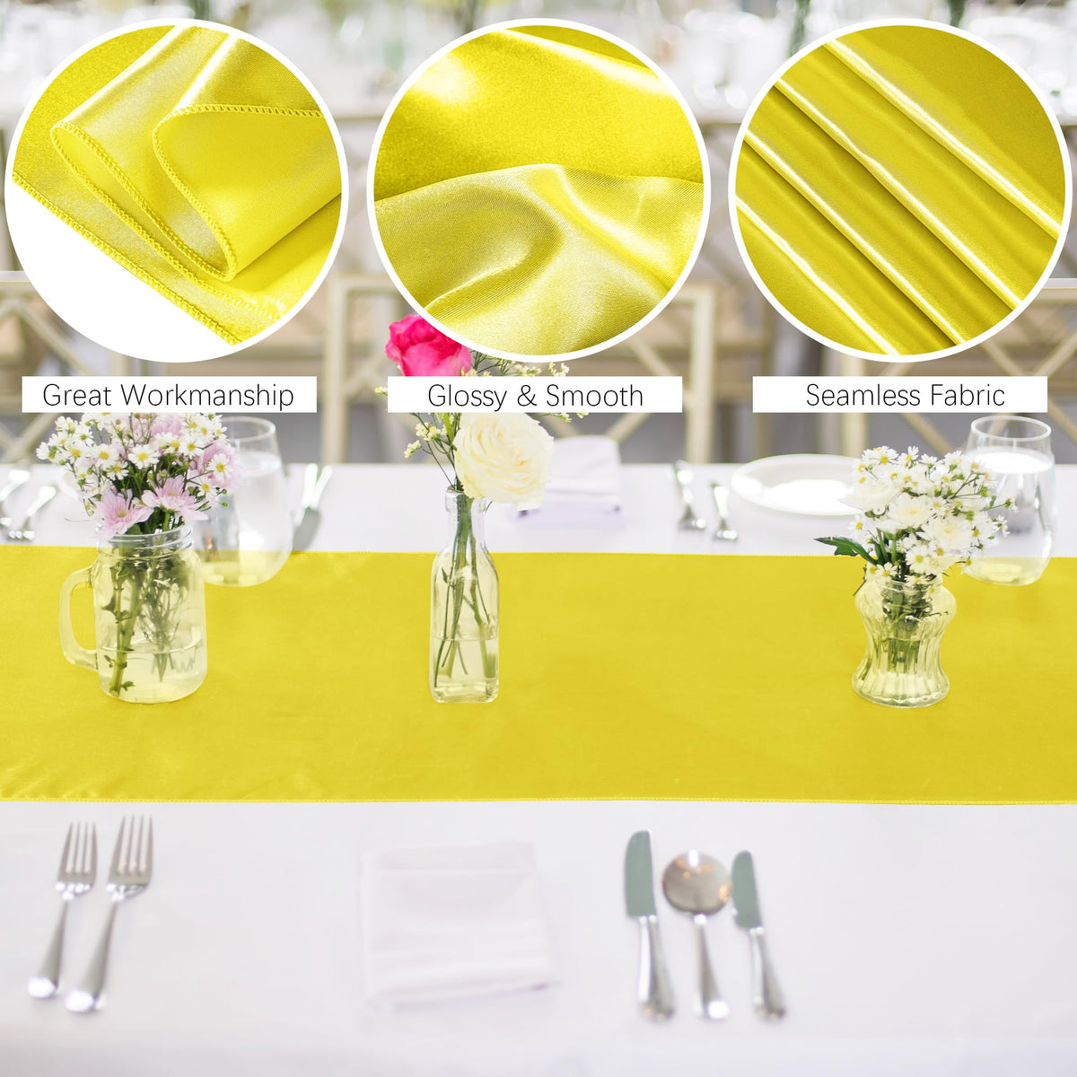 Aneco 12 Pack Satin Table Runner 12 X 108 Inch Yellow Long Wedding Satin Silk Table Runner For Wedding Banquet Graduations Birth