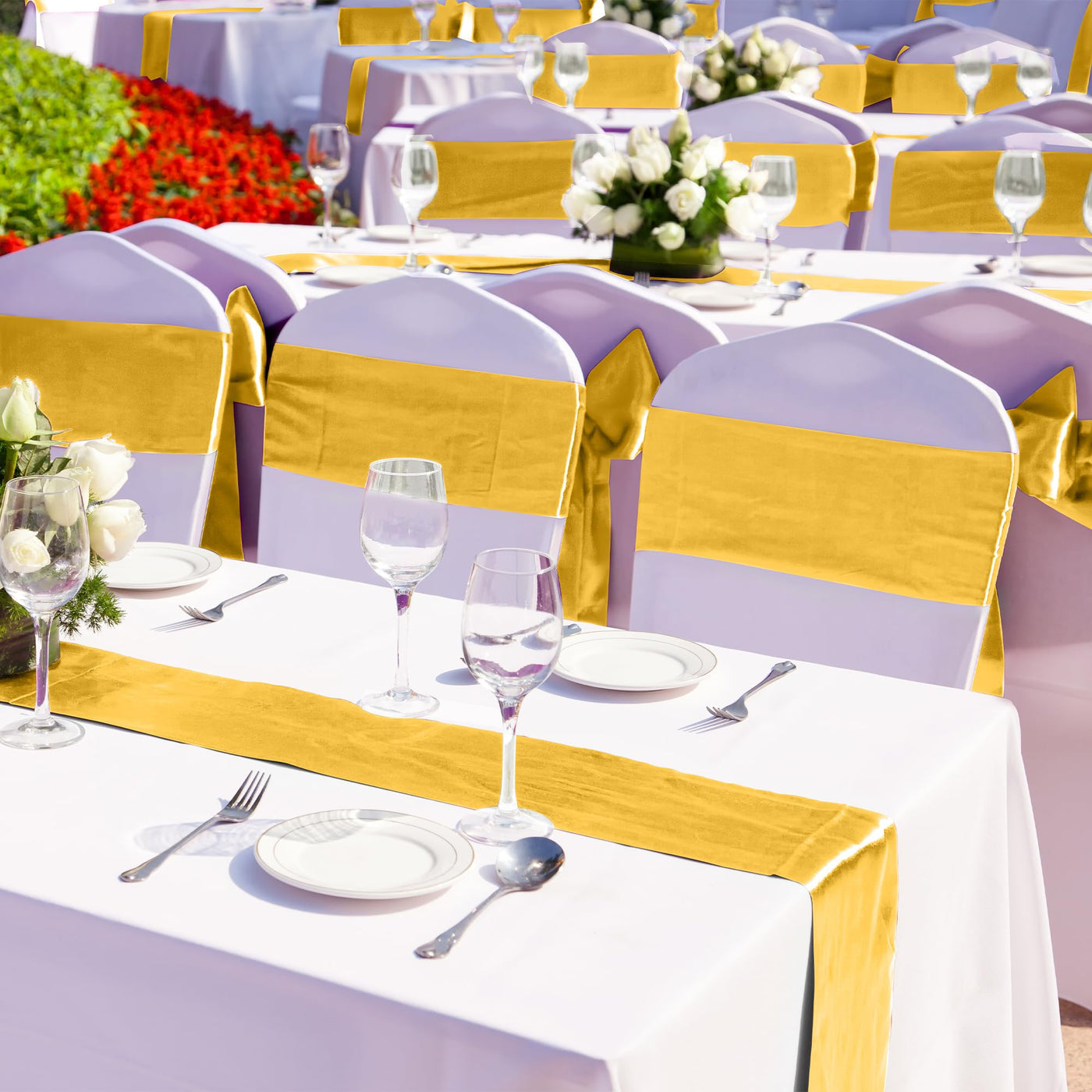 • Q: What color are the table runners available in? A: The table runners are available in a golden color, adding a vibrant touch to your table decorations.
