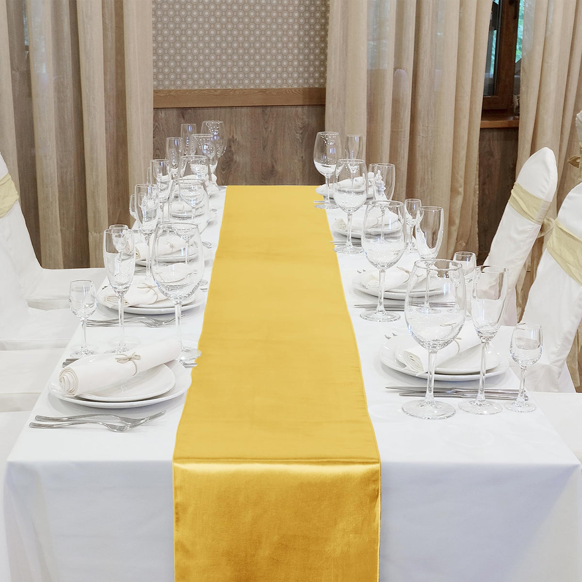 Aneco 4 Pack Satin Table Runner 12 X 108 Inch Golden Long Bright Silk And Smooth Fabric Party Table Runner For Wedding Banquet P