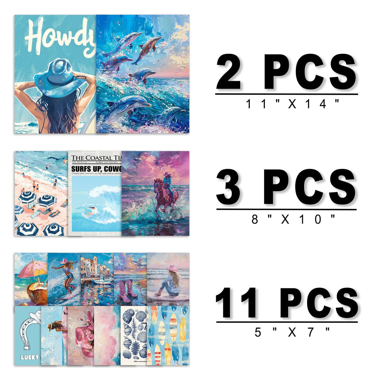 - Q: What is included in the ANERZA Coastal Cowgirl Room Decor set? A: The ANERZA set includes 16 pieces of coastal cowgirl wall art prints designed for various living spaces.