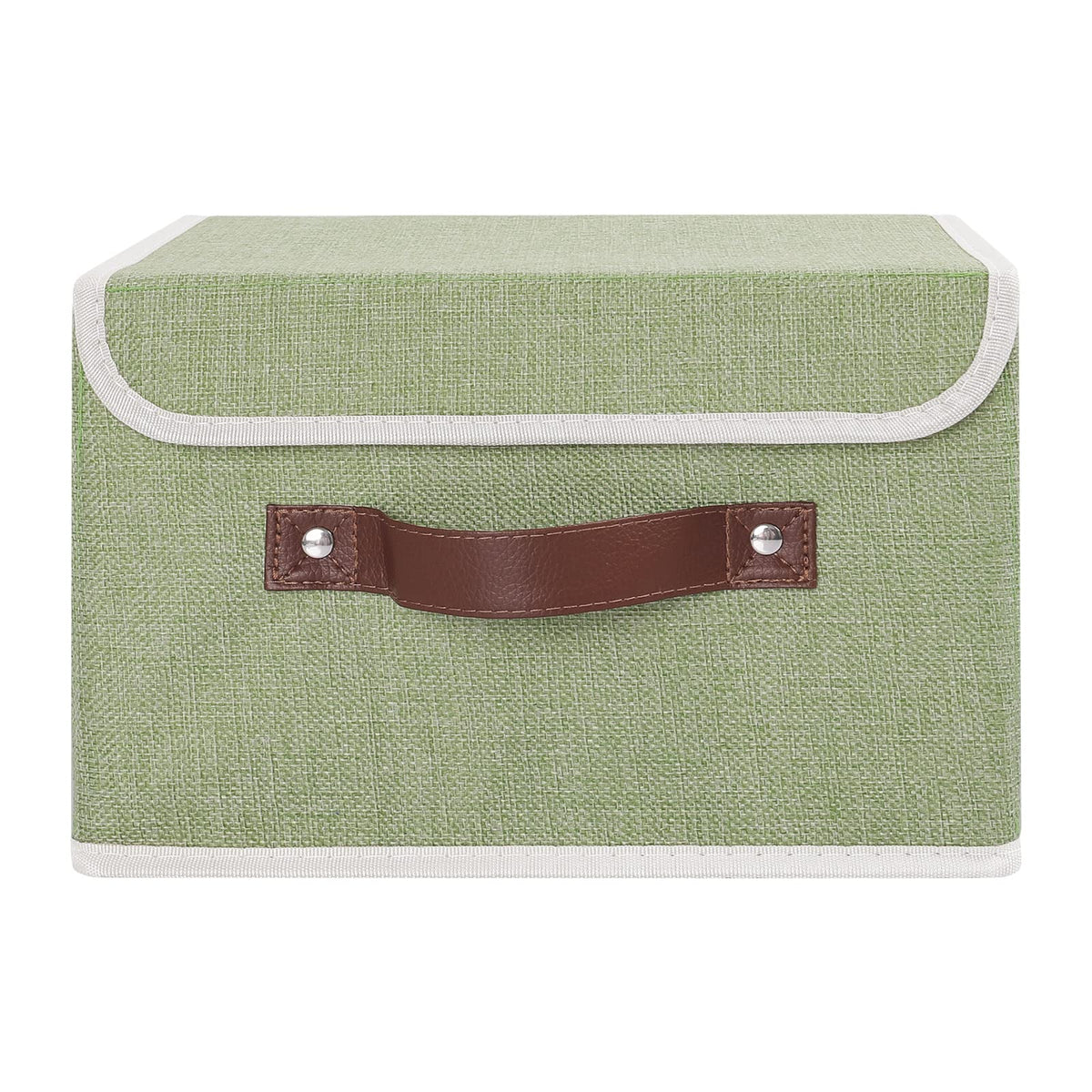 Anminy Storage Bin With Lid Storage Boxes With Pu Leather Handles Pp Plastic Board Decorative Foldable Lidded Cotton Linen Fabri