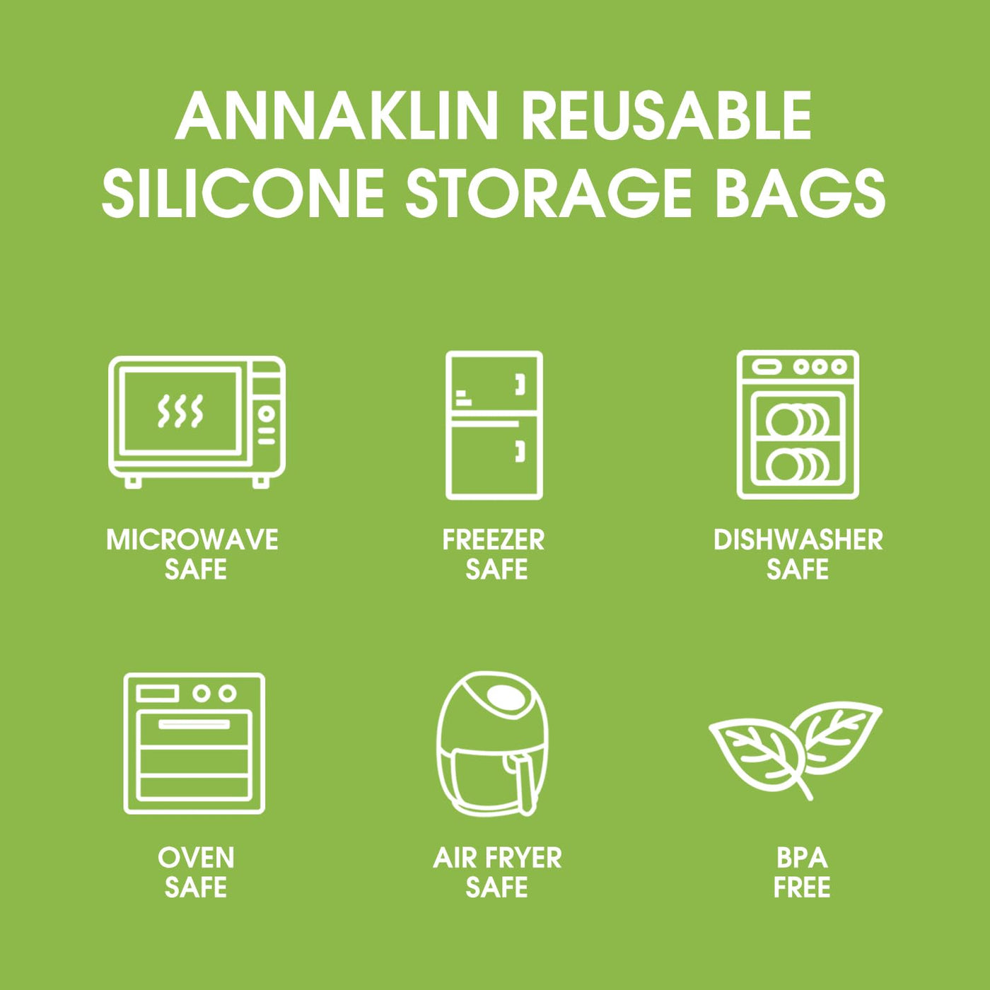 - Q: How do I clean the Annaklin silicone food bags? A: The silicone food bags are dishwasher safe for easy cleaning. You can also wash them by hand with warm soapy water.