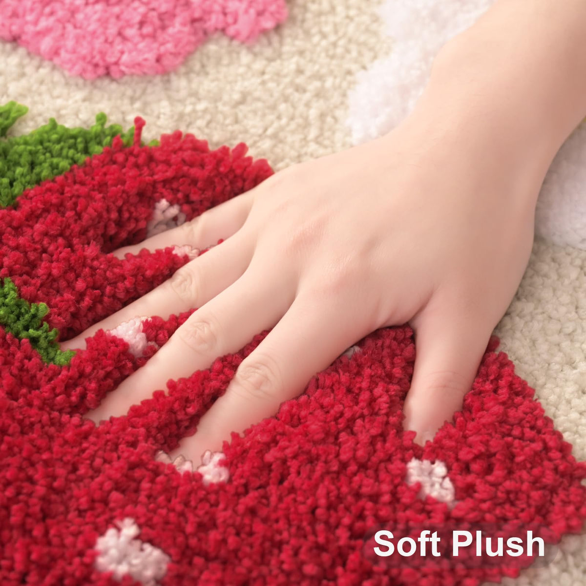 Anybar Beige Toilet Rugs U Shaped, Cute Strawberry Flower Bathroom Contour Toilet Mats,Extra Soft Absorbent Toilet Carpet Bathro