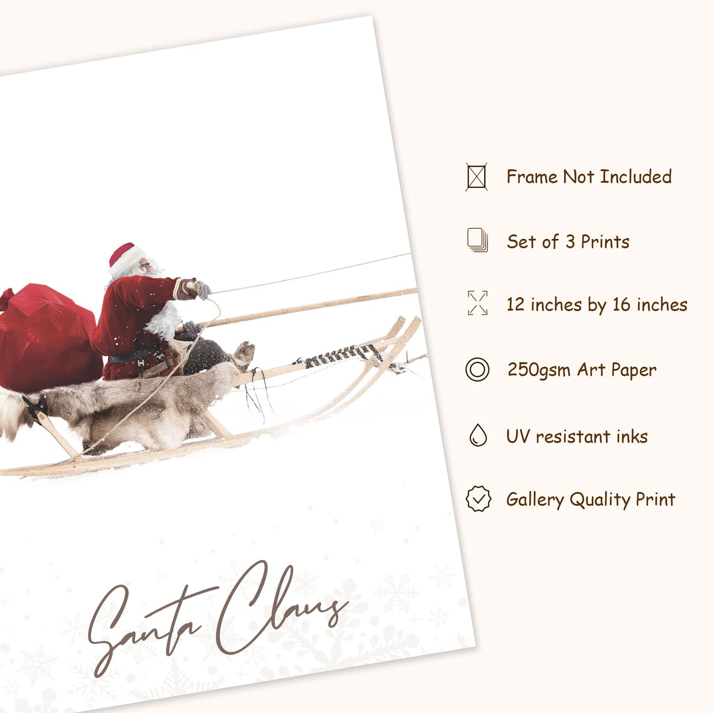 Anydesign 3Pcs Christmas Wall Art Prints 12X16In Santa Claus Reindeer With Sleigh Art Poster Decor Large Aesthetic Xmas Posters