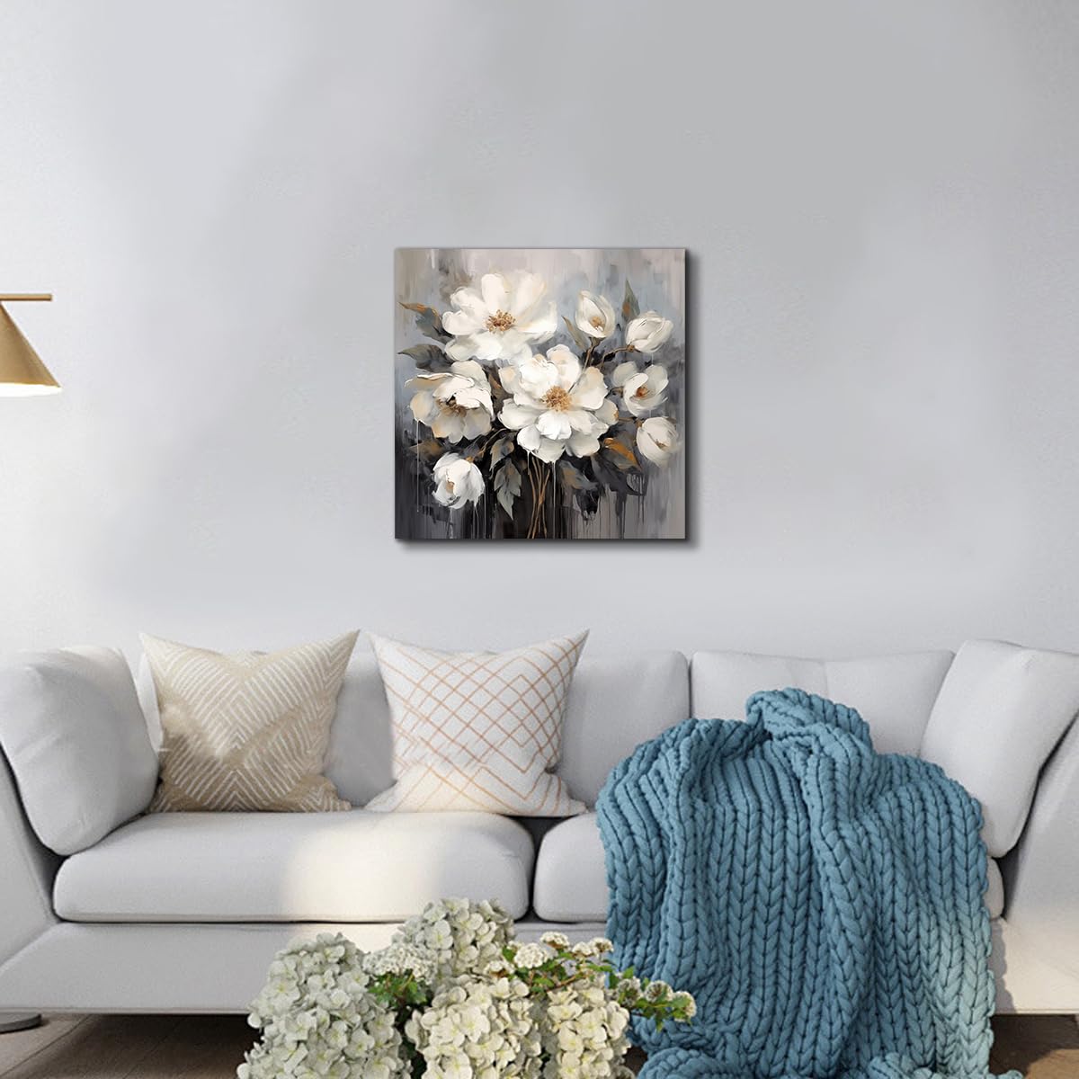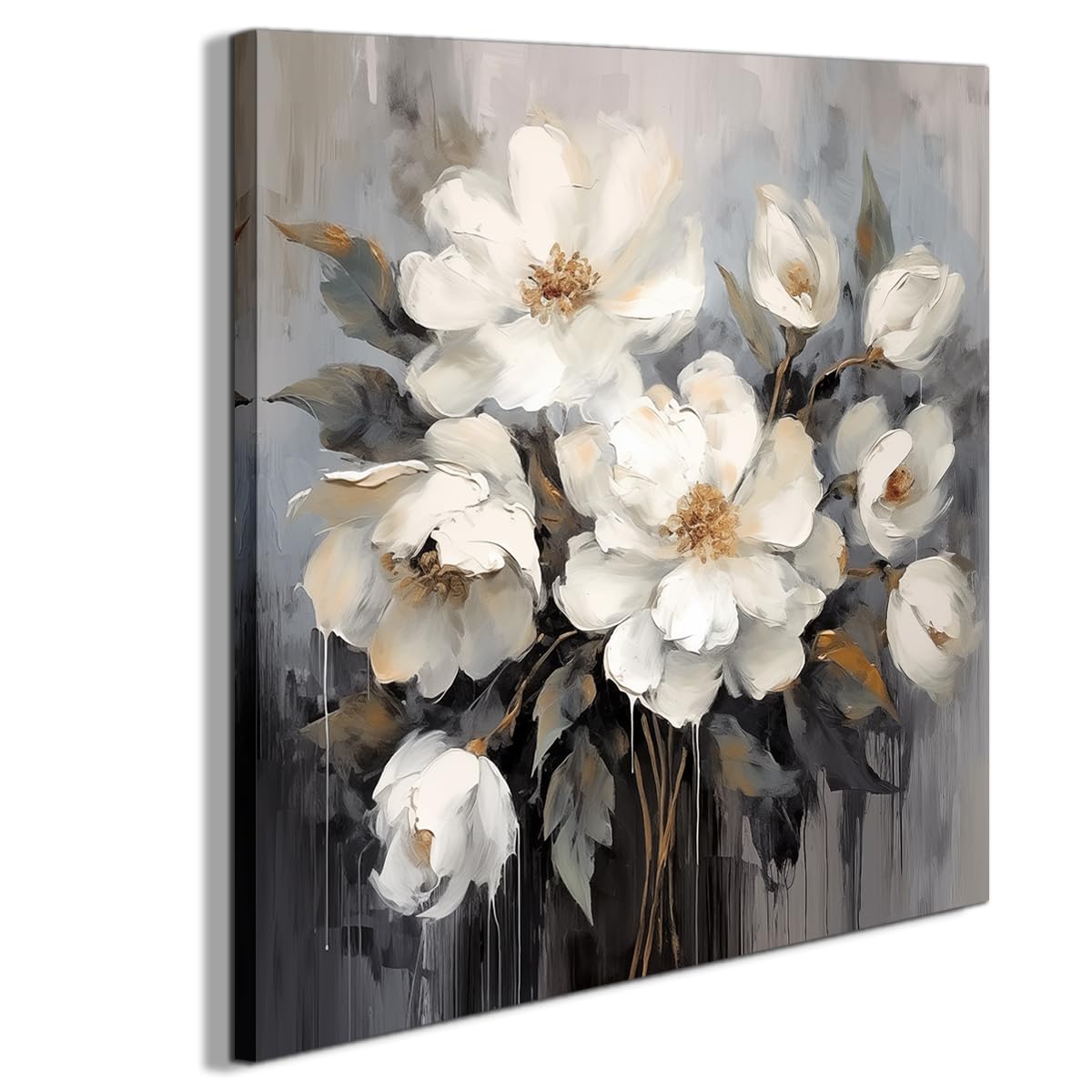 Anzhongart Bathroom Wall Art, Flower Wall Art,Floral Canvas Wall Art, Big Wall Art White And Gray Flower Decoration,Bedroom Offi