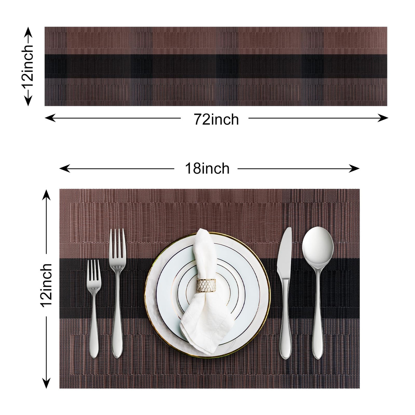 Aofmee Table Runner And Placemats Set Of 6 Washable, Heat Resistant Place Mats With Table Runner, Woven Vinyl Table Placemats Fo