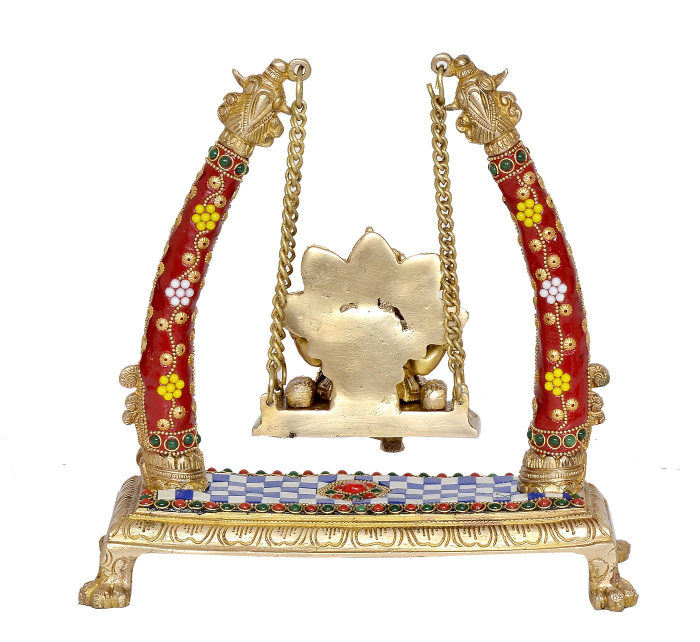 Aona Brass Ganesha Swing Sculpture Handcrafted Ganesha Swing - Intricately Designed Lord Ganesh Jhula For Home Decor And Temple, Height : 10 Inch