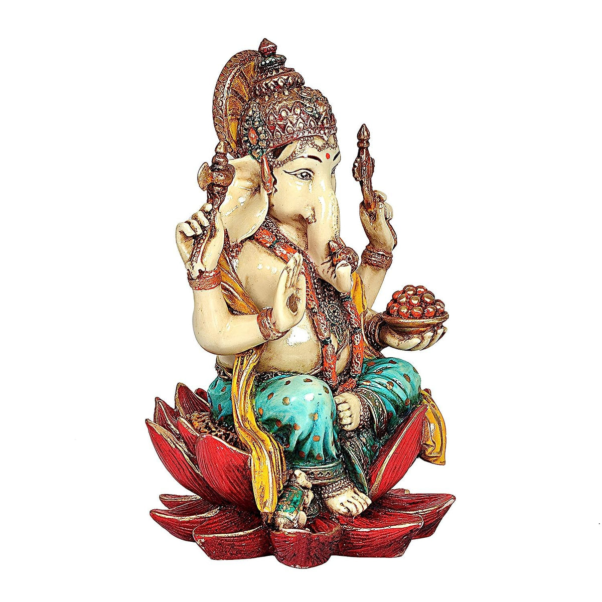 Aona Polyresin Ganesha Statue Idol Murti On Lotus For Temple Home Decor | Height : 7 Inches (Orange)
