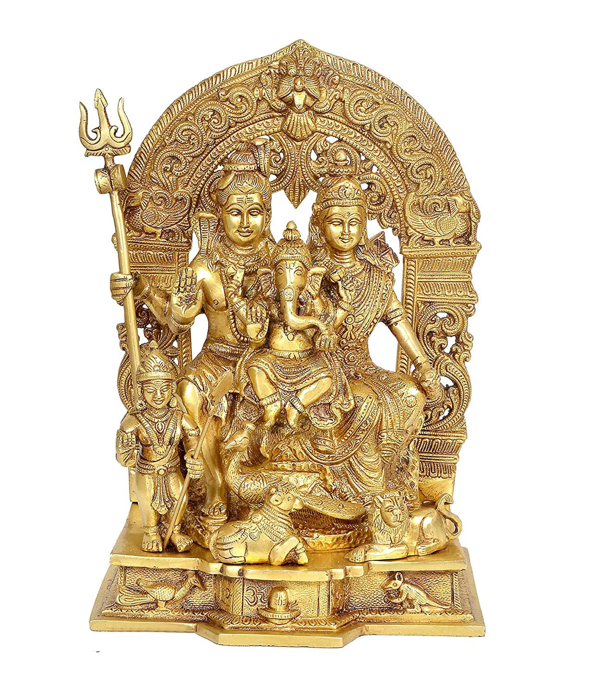 Aona Shiv Parivar Brass Action Pooja Idol/Brass Made Shiv Parivar/Shiv Parvati Ganesh Idol For Good Luck, Success And Prosperity