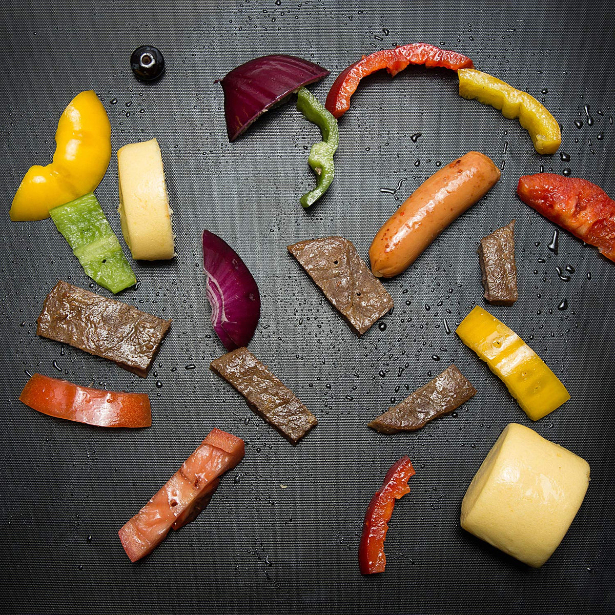 • Q: What types of food can I grill on the Aoocan Grill Mat? A: You can grill a variety of foods on the Aoocan Grill Mat, including vegetables, shrimp, fish, bacon, pizza, pancakes, and eggs, without worrying about food falling through the grates.