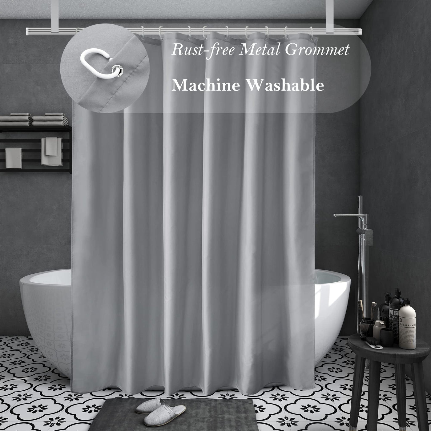 Aoohome 96 Inch Extra Long Shower Curtain Liner, Polyester Bathroom Curtain For Hotel With Hooks, Waterproof, Weighted Hem, Ligh