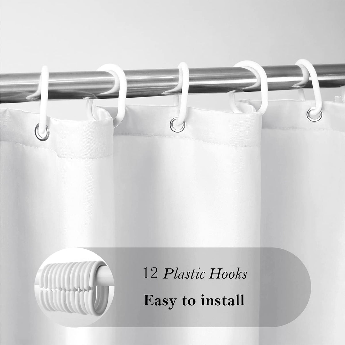 • Q: Is the liner easy to install? A: Yes, the shower curtain liner is easy to install with the included hooks and can be hung on most standard rods.