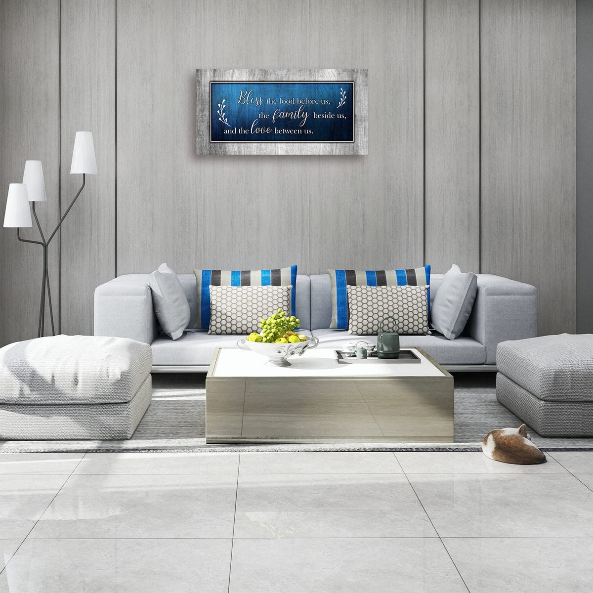 Aoshdart Canvas Wall Art For Dining Room Decor-Blue And Grey Canvas Prints Painting Bless The Food Quote-Wall Pictures Living Ro