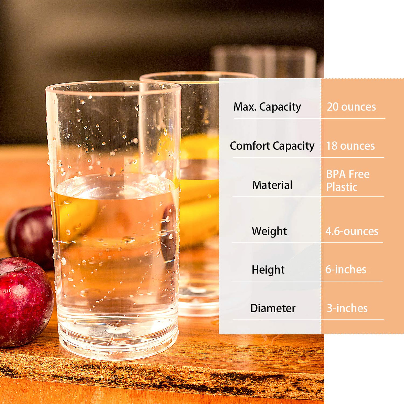 Aoyite 20-Ounce Plastic Tumblers Dishwasher-Safe Premium Quality Juice Water Glasses Bpa-Free Clear Set Of 6 Drinking Cups