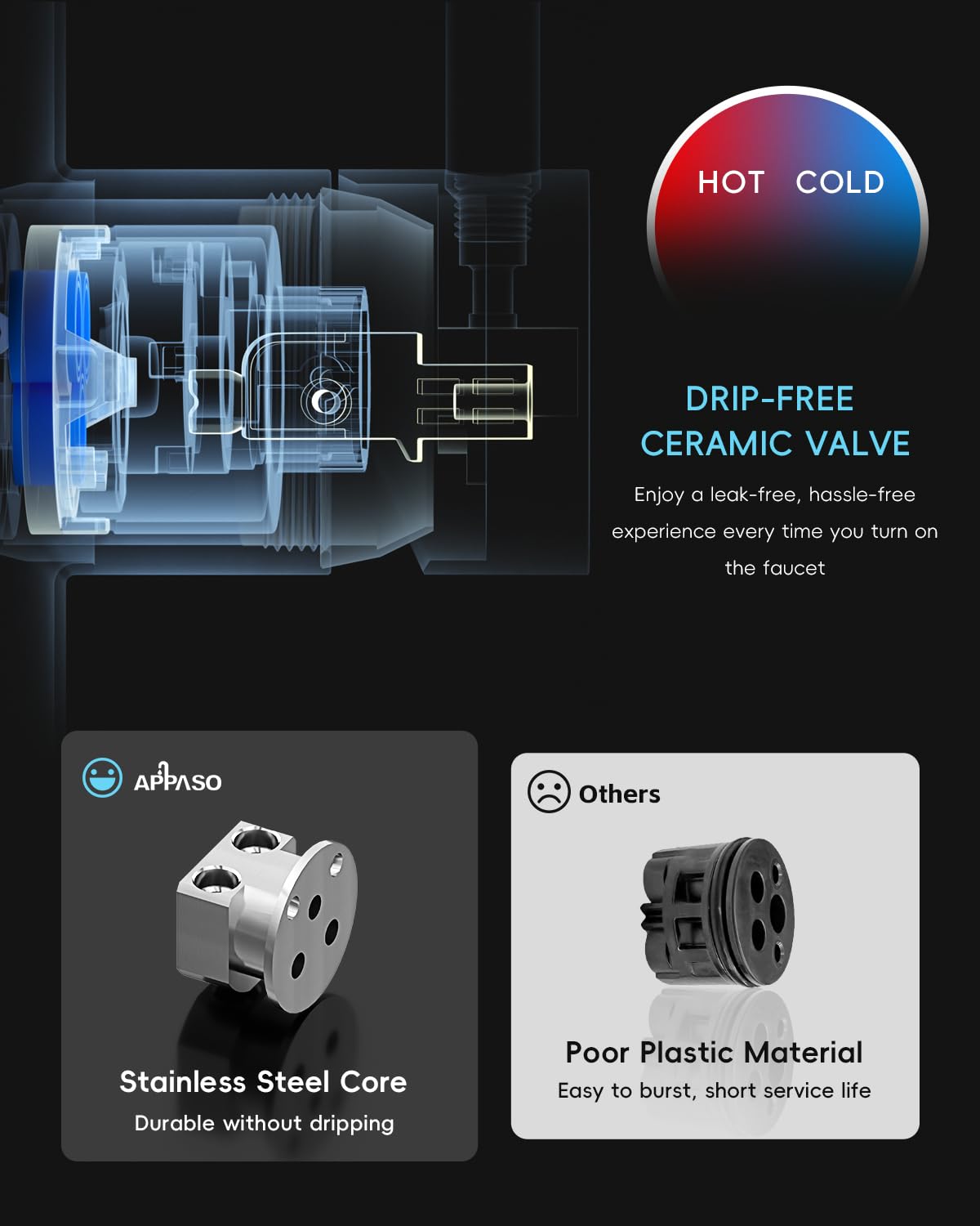 - Q: What kind of customer support does APPASO offer? A: APPASO provides reliable customer service, available 24/7 to assist with any questions or concerns regarding the faucet.