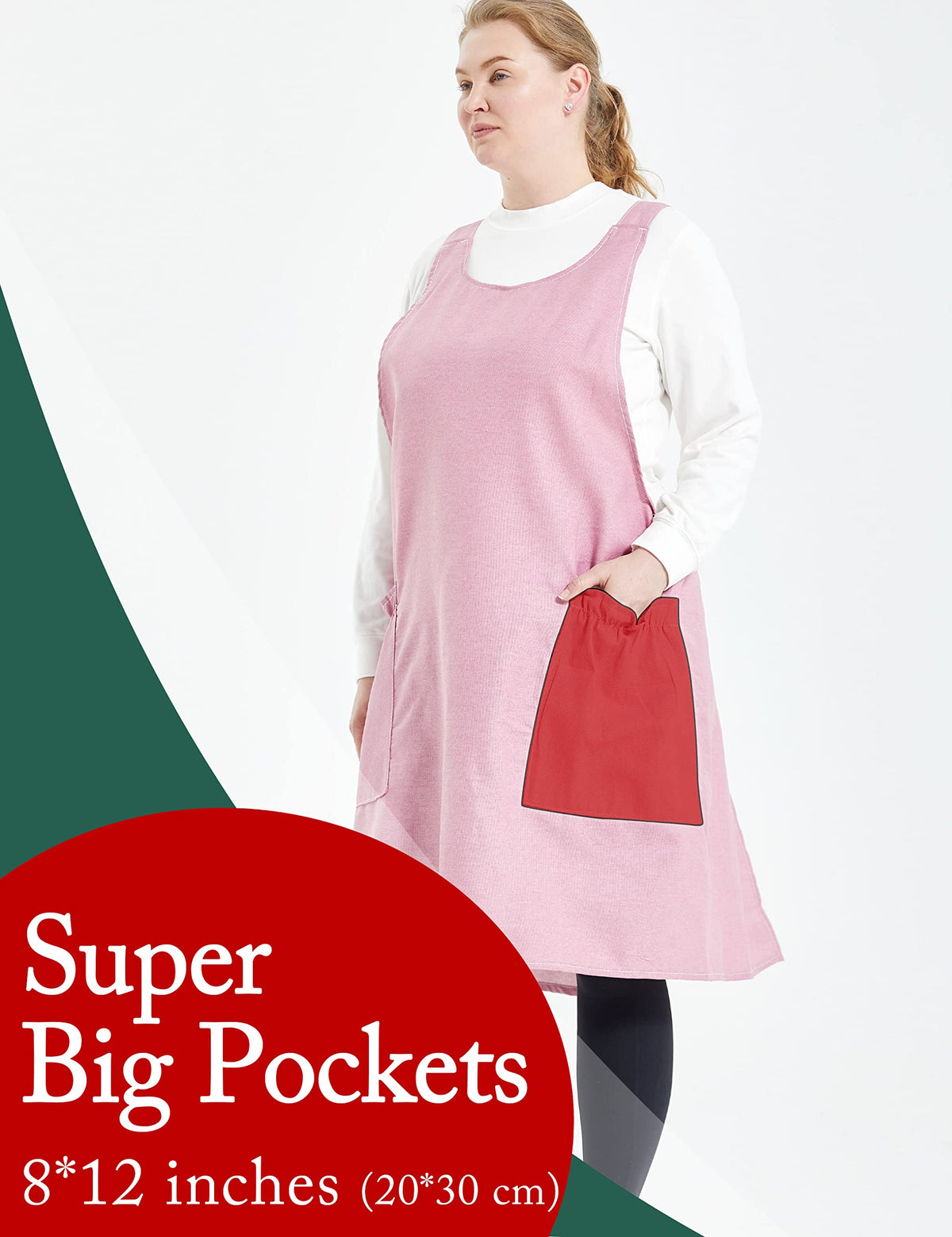 Apronner Big Plus Size Aprons For Women With Pockets Cotton Linen Baking Kitchen Cooking Pure Pink