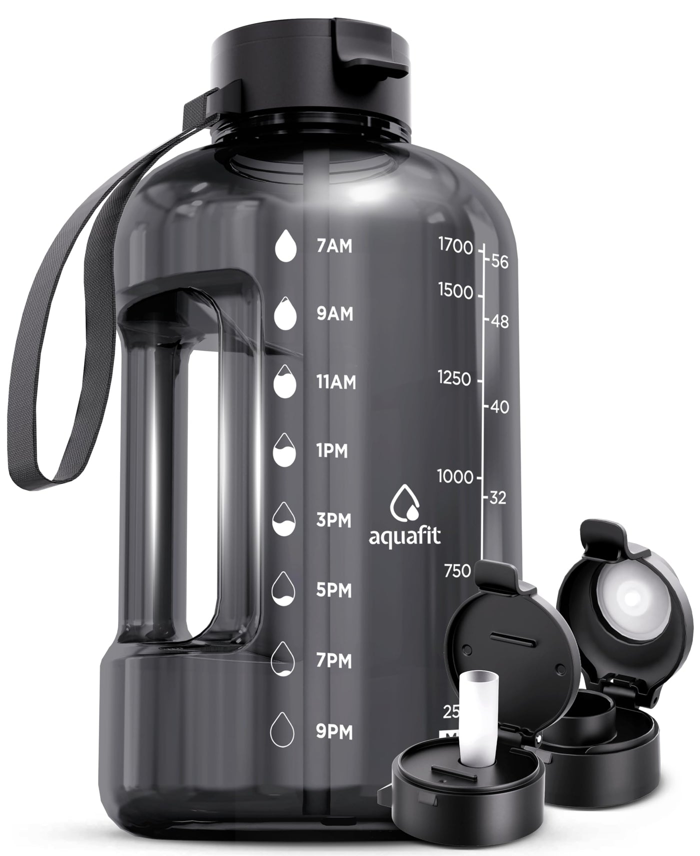 Aquafit 64 Oz Water Bottle With Time Marker - Straw & Chug Lid - Bpa Free Half Gallon Water Bottle, Big Water Bottle With Straw,