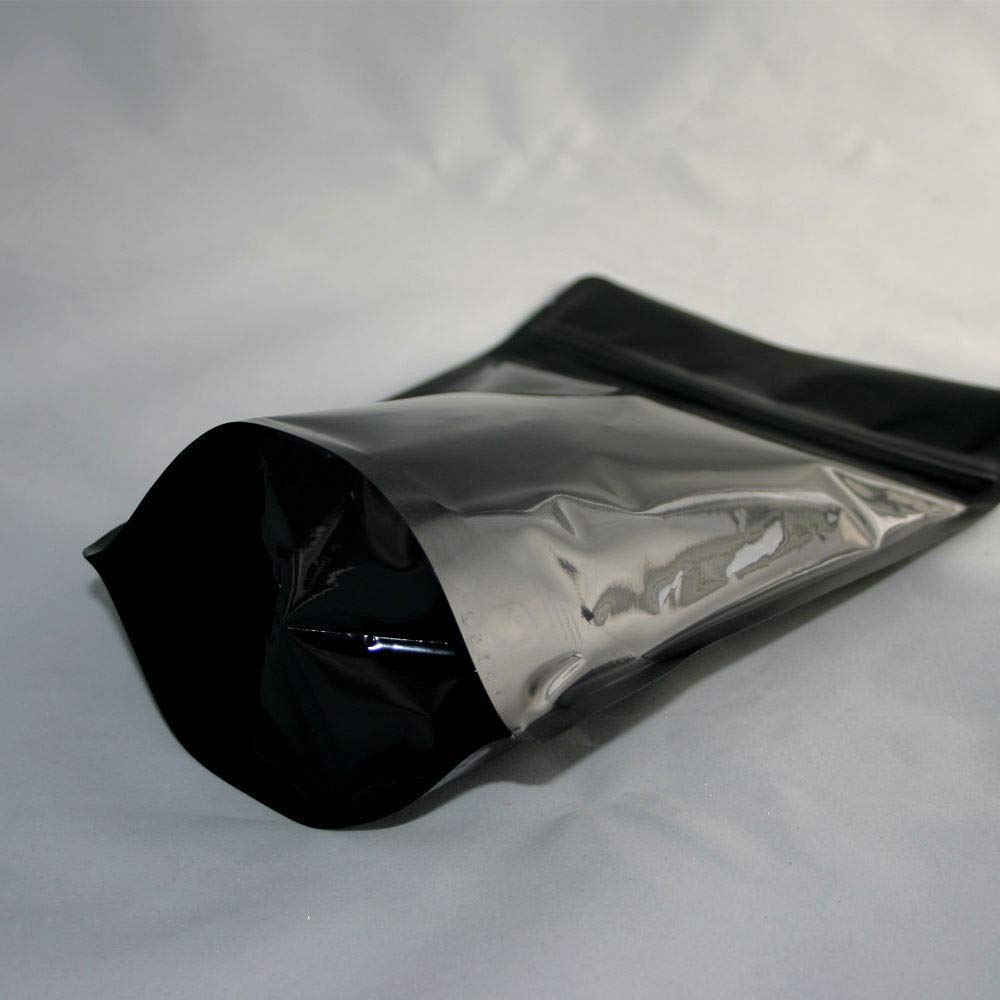 Aquapapa Stand Up Pouch Heavy Duty Metallized Black With Zip Lock Closure - Top Notch Food Storage Packaging Bag, 5 Mil, 25-Pack