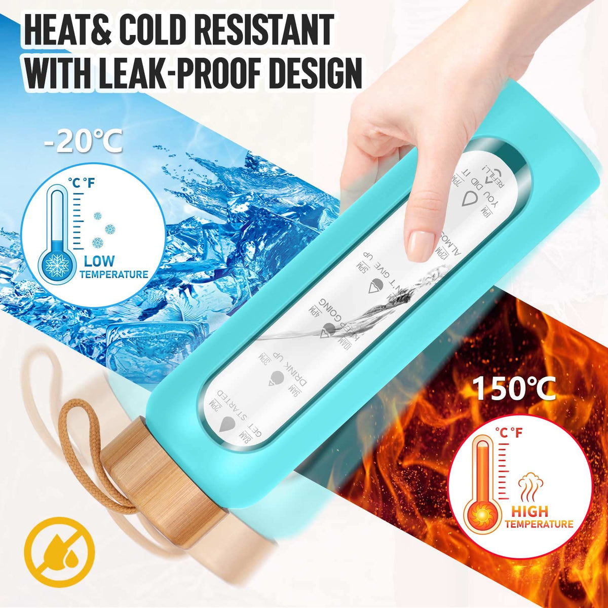 - Q: How do the time markers on the bottle help with hydration? A: The time markers on the bottle provide reminders throughout the day to help you track and boost your water intake.