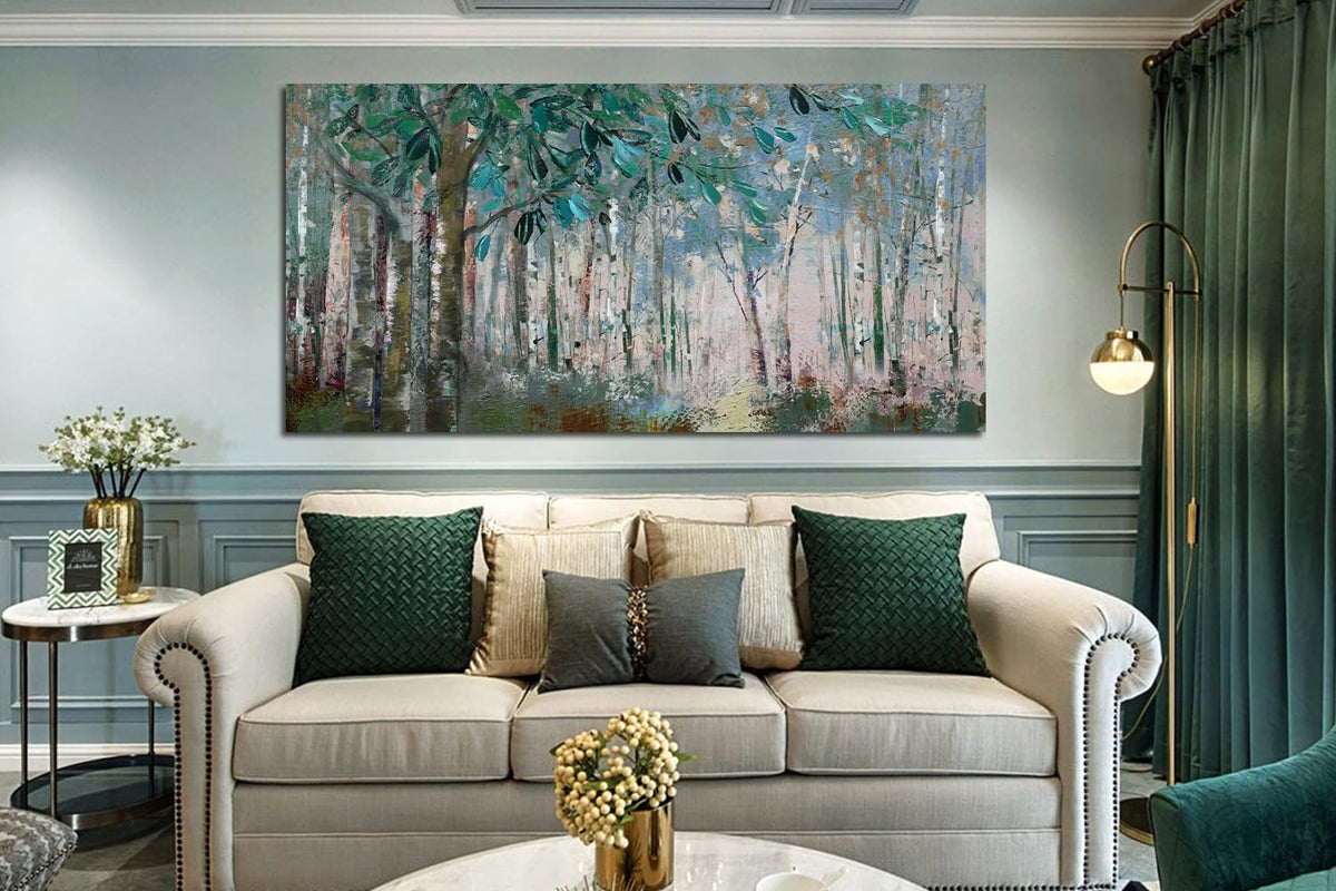 Ardemy Green Tree Canvas Wall Art Forest Landscape Picture Modern Birch Trees Nature Painting, Abstract Artwork 40''X20'' Framed
