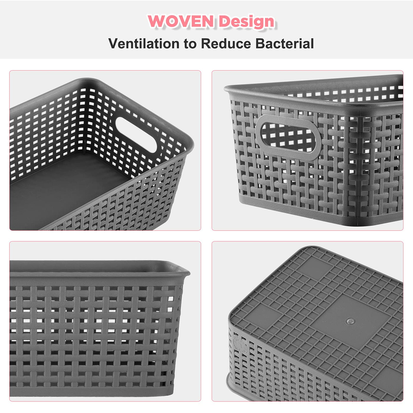 - Q: What types of items can I store in these baskets? A: These baskets are great for storing various items such as bath accessories, kitchen supplies, craft projects, tools, and more.