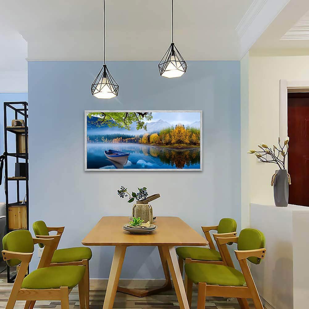 Arjun Lake Canvas Wall Art Blue Mountain Sky Nature Landscape Boat Picture Artwork Modern Scenic Painting For Living Room Bedroo