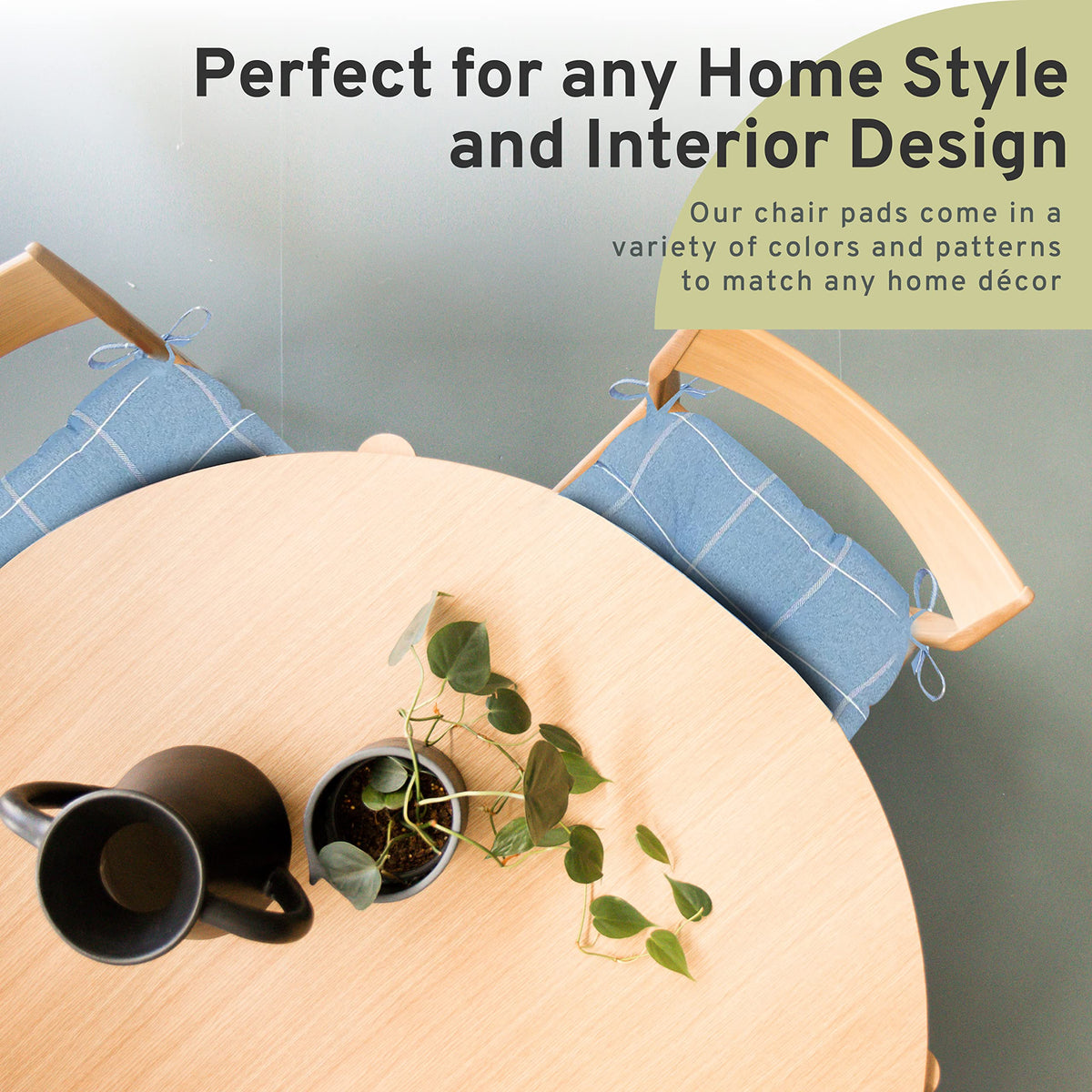 • Q: Do the chair pads have ties for secure placement? A: Yes, the chair pads come with full-length fabric ties that are long enough to secure them firmly to most chairs.