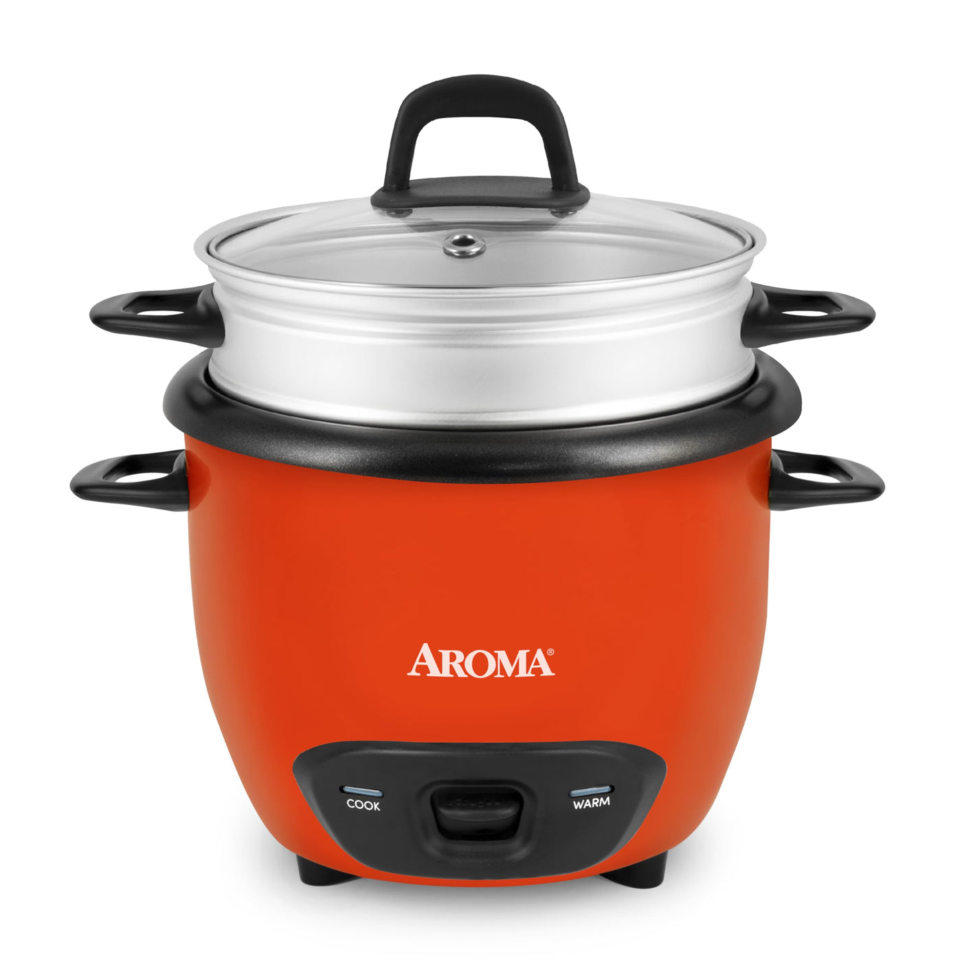 Enjoy easy home cooking with the Aroma 6-Cup (Cooked) Pot-Style Rice Cooker & Food Steamer. Restaurant-quality rice. Healthy steamed meals. Delicious one-pot dishes. Prepare all this and more at the flip of a switch! Aroma takes the cook out of home cooking - turning kitchen time into your time! Help the kids with homework, get creative at play time or pick up that novel youve been waiting to dive into. All while delivering hot, hearty and healthy meals the entire family will love. This convenient cookers compact capacity perfectly cooks 2 to 6 cups of any variety of rice. Once the rice has finished, it will automatically switch to Keep Warm so theres no need for monitoring or stirring. The included steam tray allows for healthy steaming of meats and vegetables, even as rice cooks below. Its also perfect for oatmeal, chili, jambalaya, soups and so much more! And when the cooking is done, the inner cooking pot and all accessories remove for easy cleanup in the dishwasher.