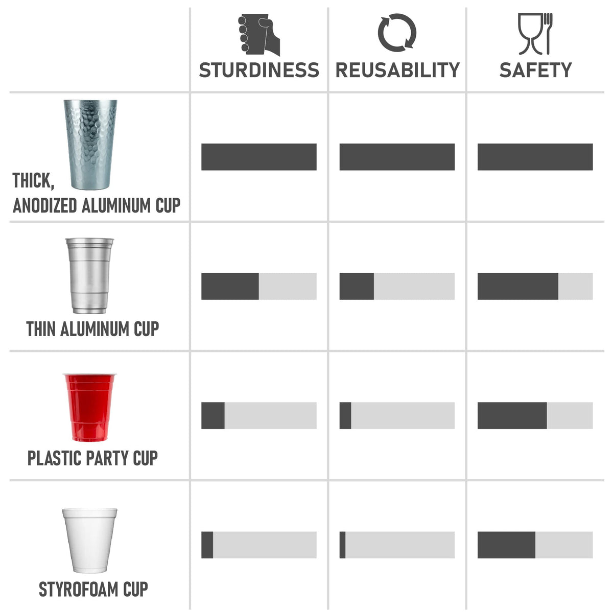 • Q: What material are the Arora Aluminum Cups made of? A: The Arora Aluminum Cups are made of high-quality aluminum, which is durable and lightweight.