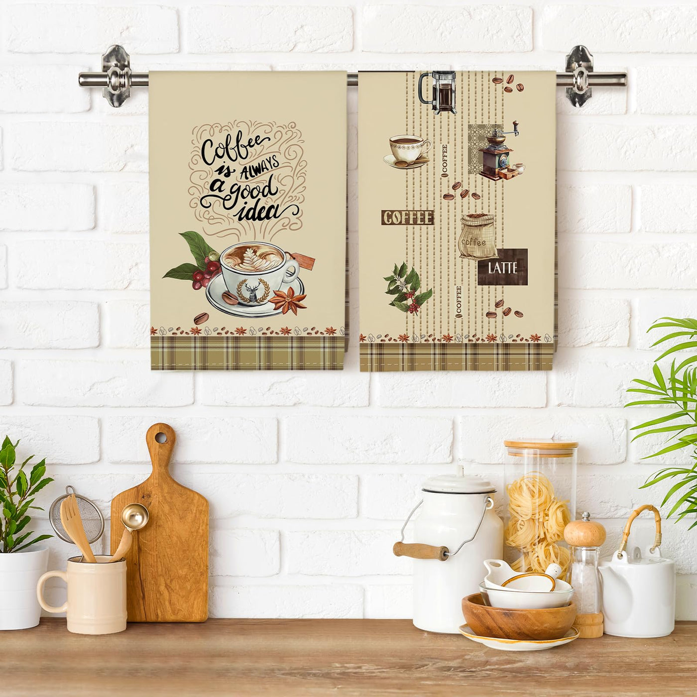 Arquiel Coffee Kitchen Towel 100% Cotton Quick Dry Dish Towels 20 X 27.5Inch, Dishcloth Hand Towels For Housewarming Gifts Dinin