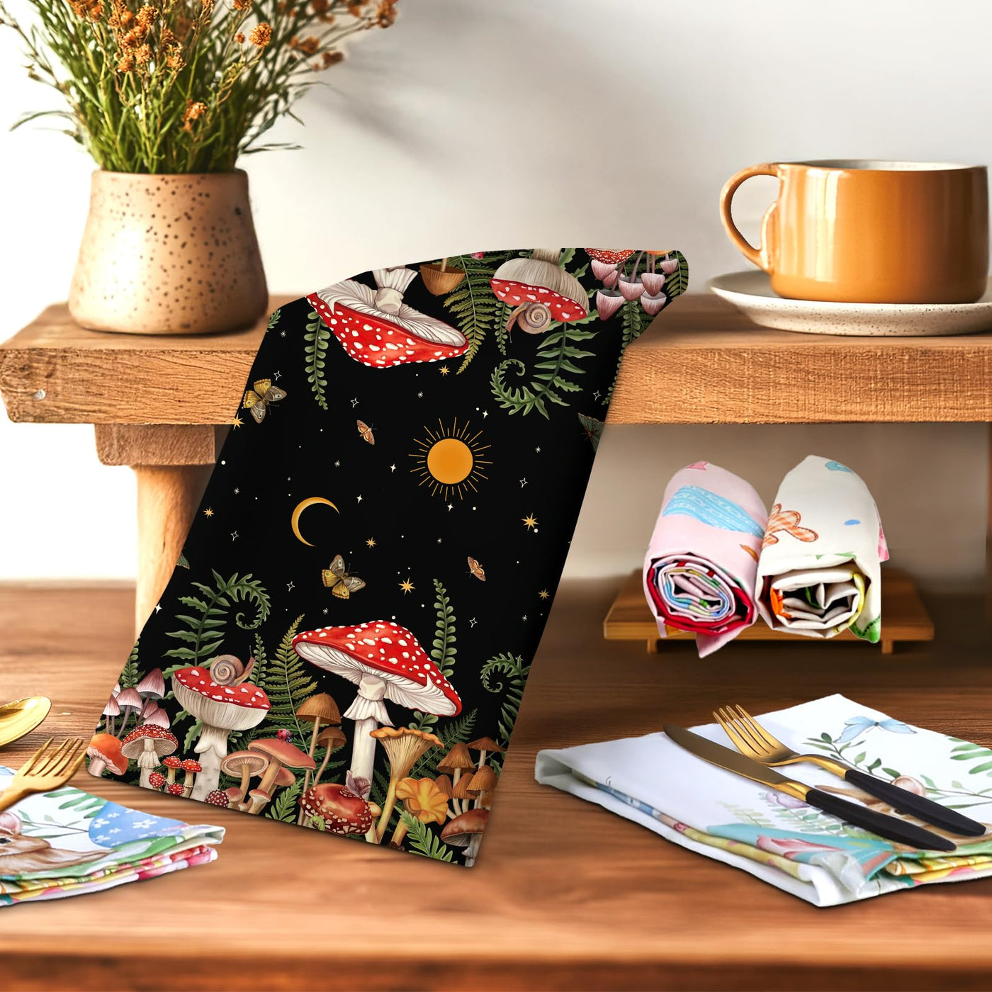 Arquiel Mushroom Tea Towels, Cotton Kitchen Towel 18.9 27.5 Inch, Quick Drying Dish Cloth For Party Anniversary Holiday Decor