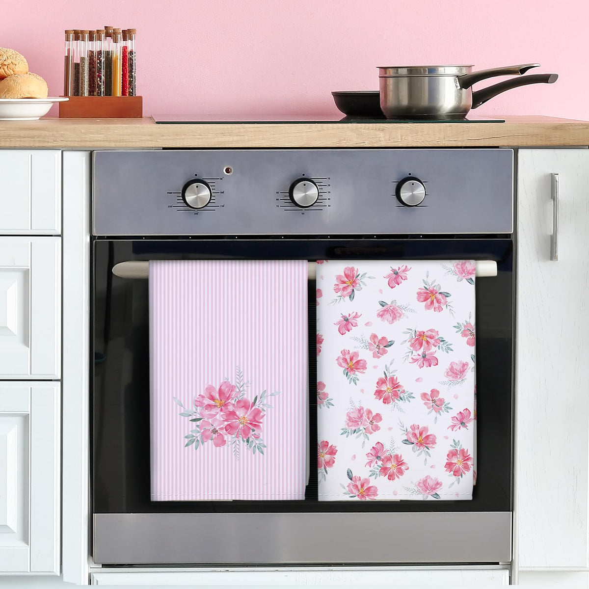 Arquiel Pink Flower Kitchen Towel 100% Cotton Quick Dry Dish Towels 20 X 27.5Inch, Dishcloth Hand Towels For Housewarming Gifts