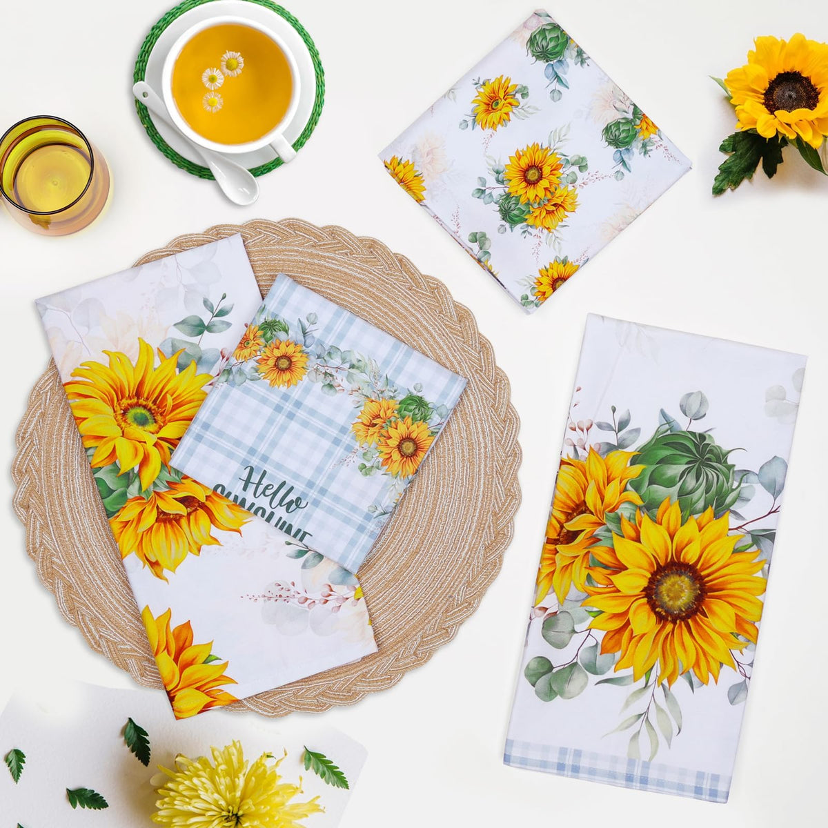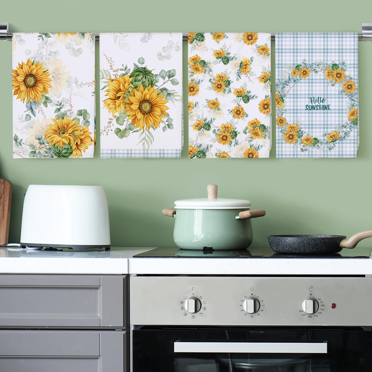 - Q: What design features do these kitchen towels have? A: The towels feature a unique design that combines sunflowers and plaid patterns, adding a lively touch to your kitchen decor.