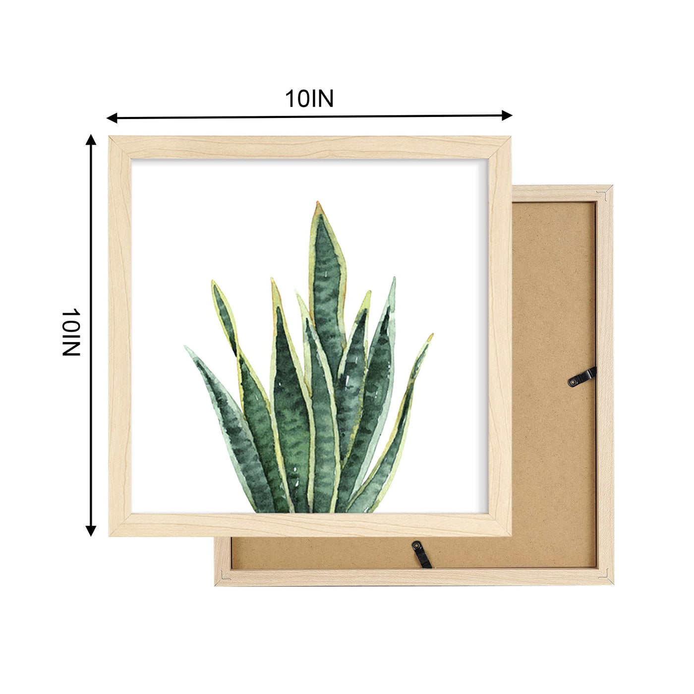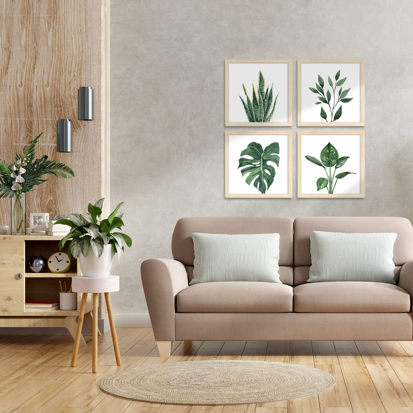 ArtbyHannah 10x10 Framed Bathroom Art Wall Collage Kit for Gallery Wall with Botanical Green Leaf Plant Prints and Natural Frames Set of 4