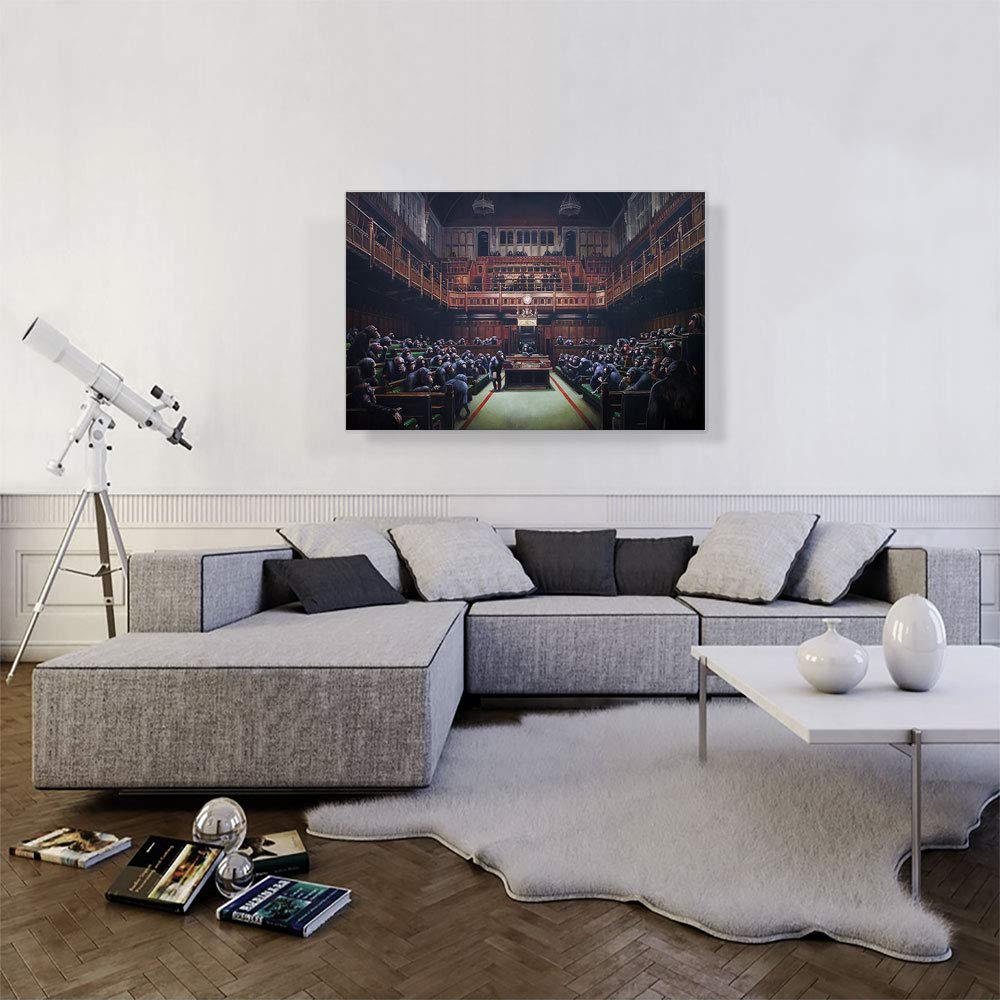 Artcanvas Monkey Parliament Canvas Art Print Stretched Framed Painting Picture Poster Giclee Wall Decor By Banksy - 40'' X 26''
