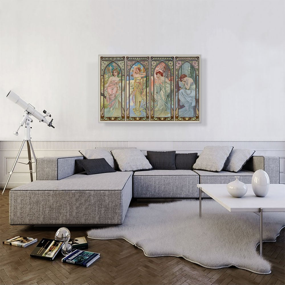 Artcanvas Times Of The Day Canvas Art Print Stretched Framed Painting Picture Poster Giclee Wall Decor By Alphonse Mucha - 40''