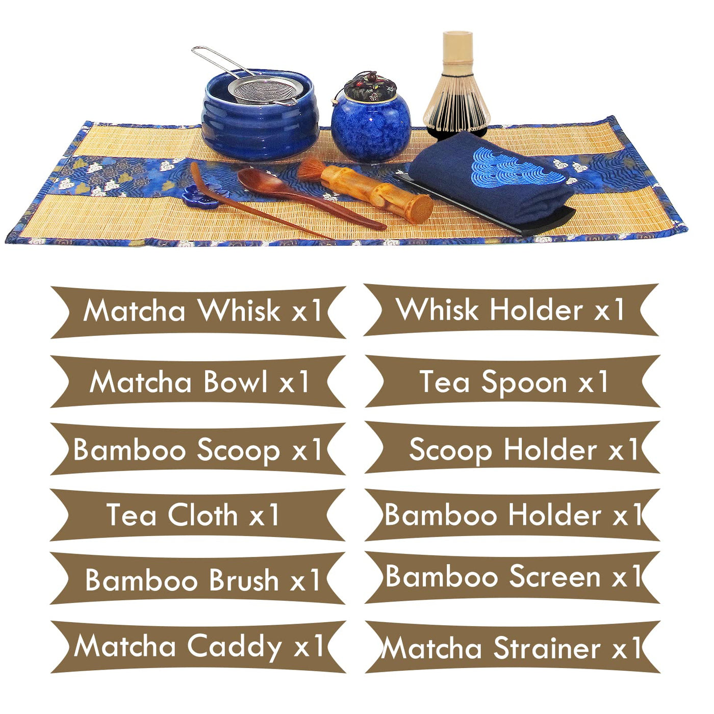 Artcome 12Pcs Japanese Matcha Tea Set, Matcha Bowl, Bamboo Whisk, Whisk Holder, Bamboo Brush And Bamboo Screen Handmade Matcha C
