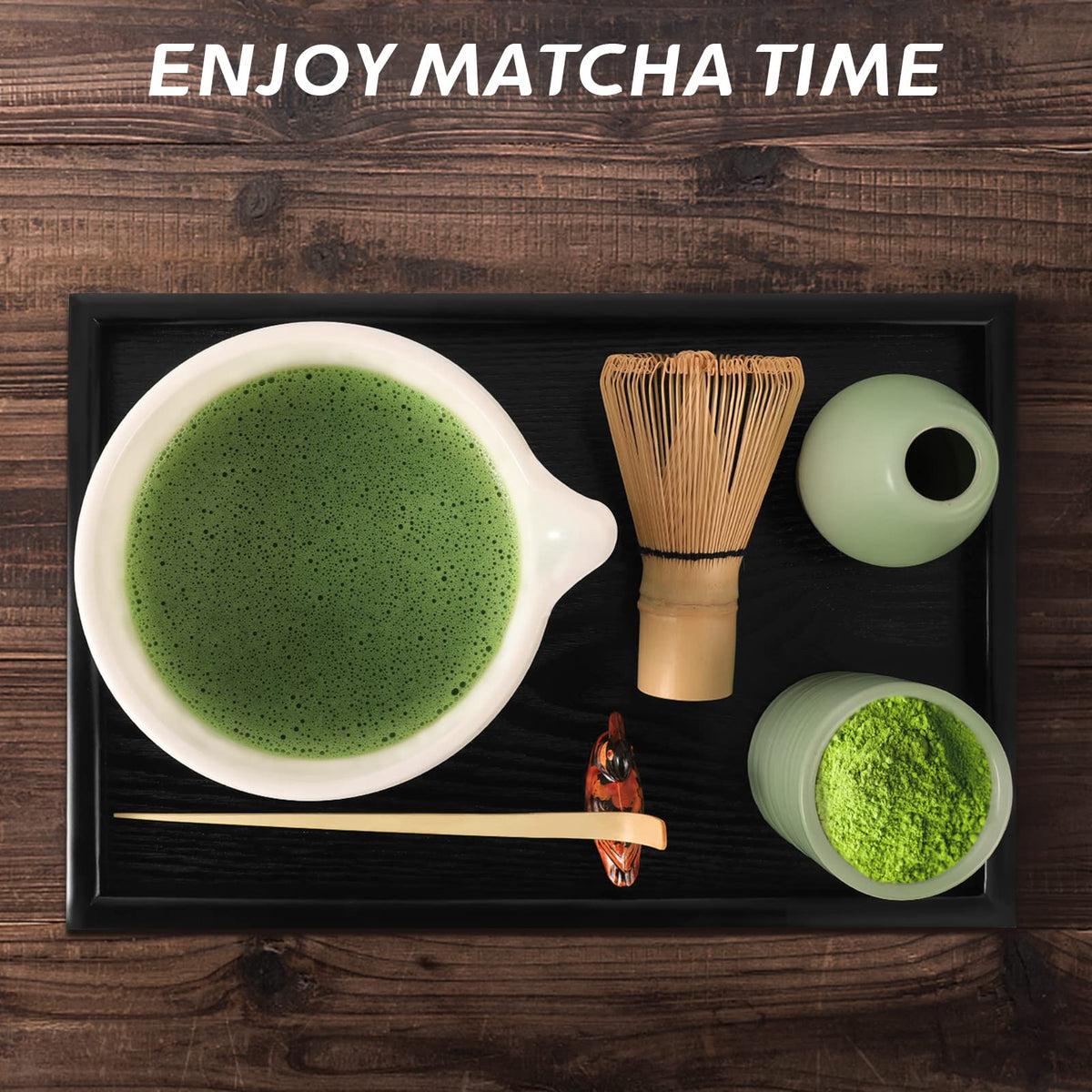 Artcome Japanese Matcha Tea Set, Matcha Bowl With Pouring Spout, Black Tea Tray, Matcha Whisk, Ceramic Whisk Holder, Matcha Powd