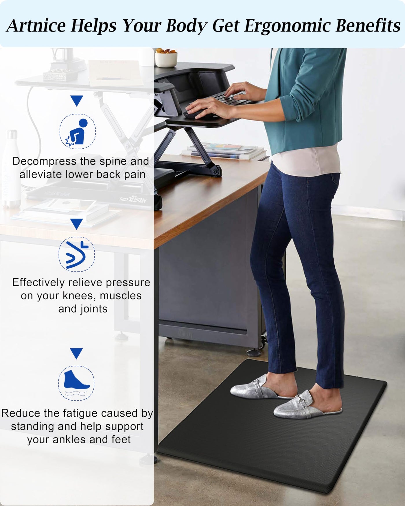 - Q: What are the benefits of using an anti-fatigue mat? A: Anti-fatigue mats help reduce stress on your joints and muscles, making them beneficial for anyone who spends long periods standing.