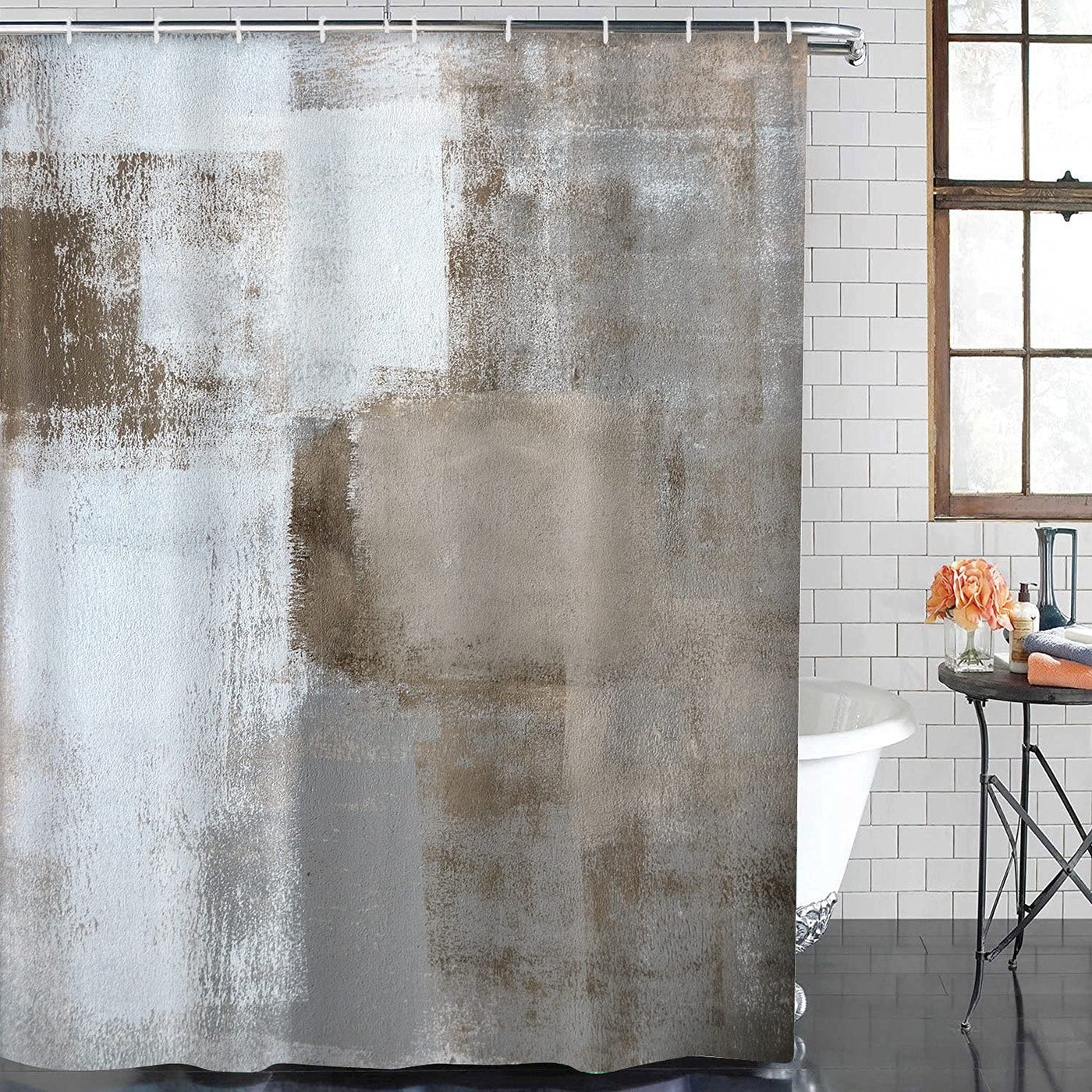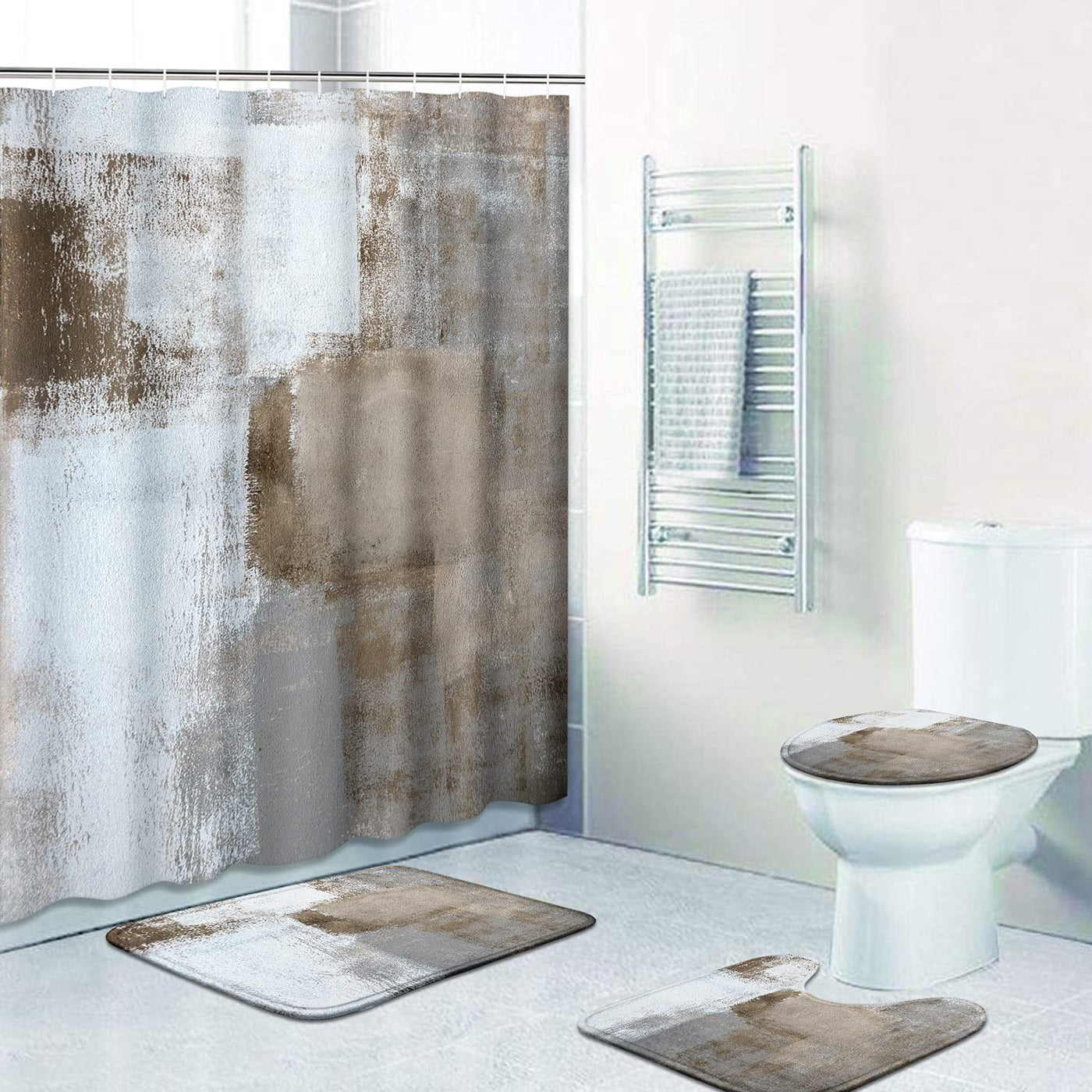 Artsocket Grey Brown Bathroom Set With Shower Curtain And Rugs Accessory,Gray Abstract Painting Modern Shower Curtain Set, Abstr
