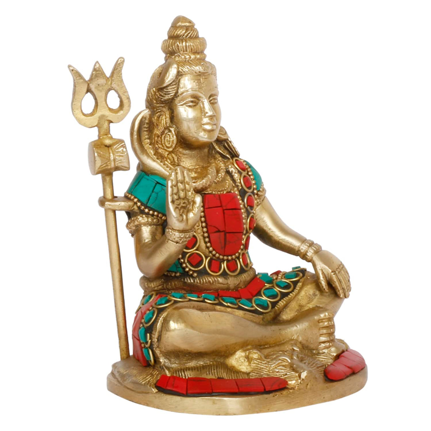 Artvarko Shiva Brass with Inlay Idol Statue God Shiv Shankar Murti Showpiece for Pooja Lord Blessing Shanker Deity Figurine Home Office Temple Art D cor 6 Inch.