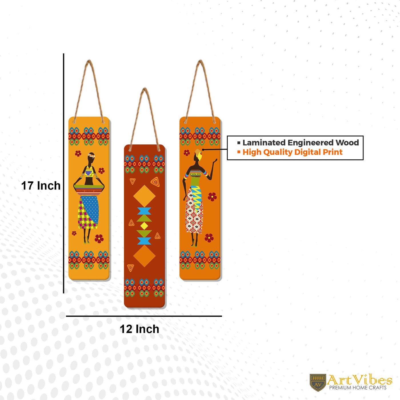Artvibes African Warli Art Designer Wooden Wall Hanging Decoration Items for Home | Gifts | Bedroom | Wooden Wall Hanger | Mdf W