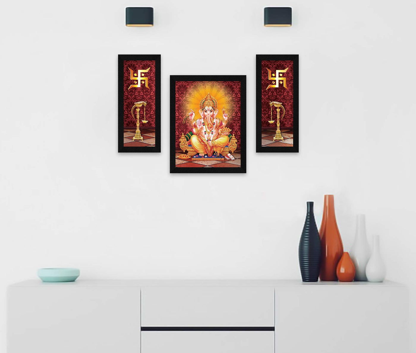ArtX Paper God Ganesh Ji Swastika Photo Frame Wall Art Painting, Multicolor, Traditional, 13.0 X 22.0 Inches in, Set of 3
