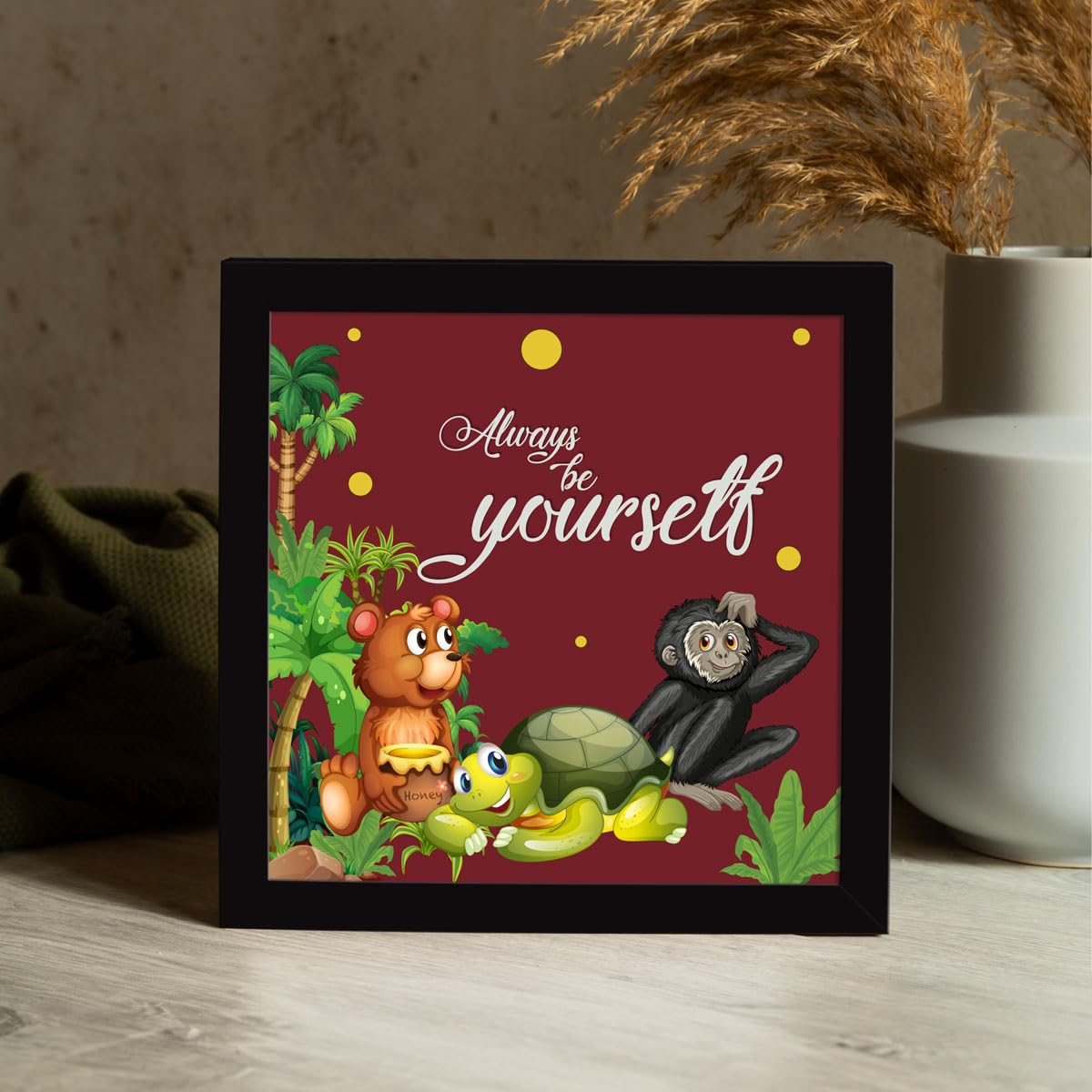 Artx Set Of 4 Cartoons Animals Kids Room Wall Art Painting, Framed Paintings 20 X 20 Inches, 10 X 10 Each, Multicolor, Synthetic